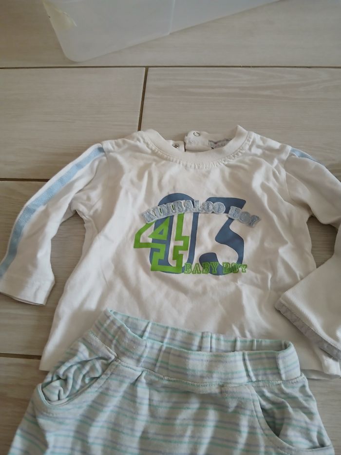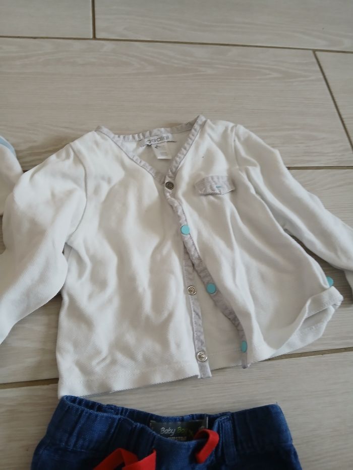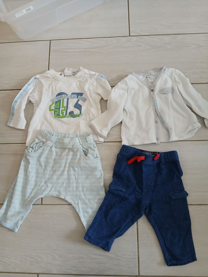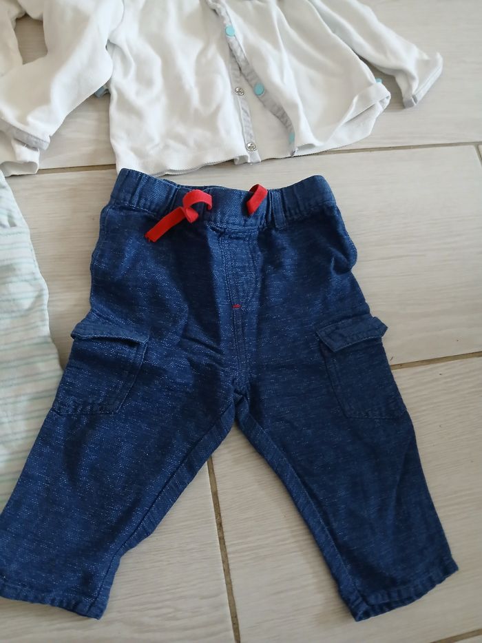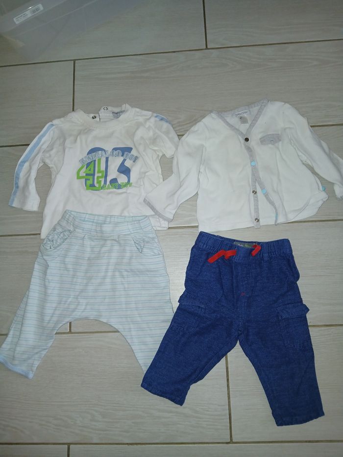 Lot de vêtements garcons 6 mois 1 haut manche longues 2 pantalons 1 gilet 1 euros le lot Très bon état