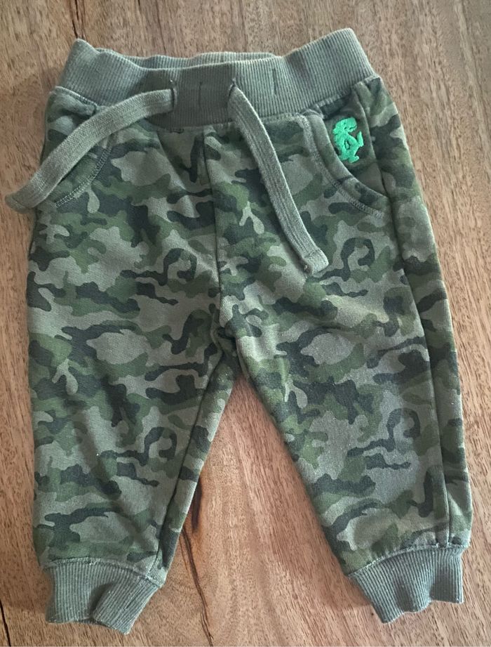 Jogging kaki. Sans tache. 60 % de coton, 40 % de polyester. Petit logo du dinosaure en broderie.