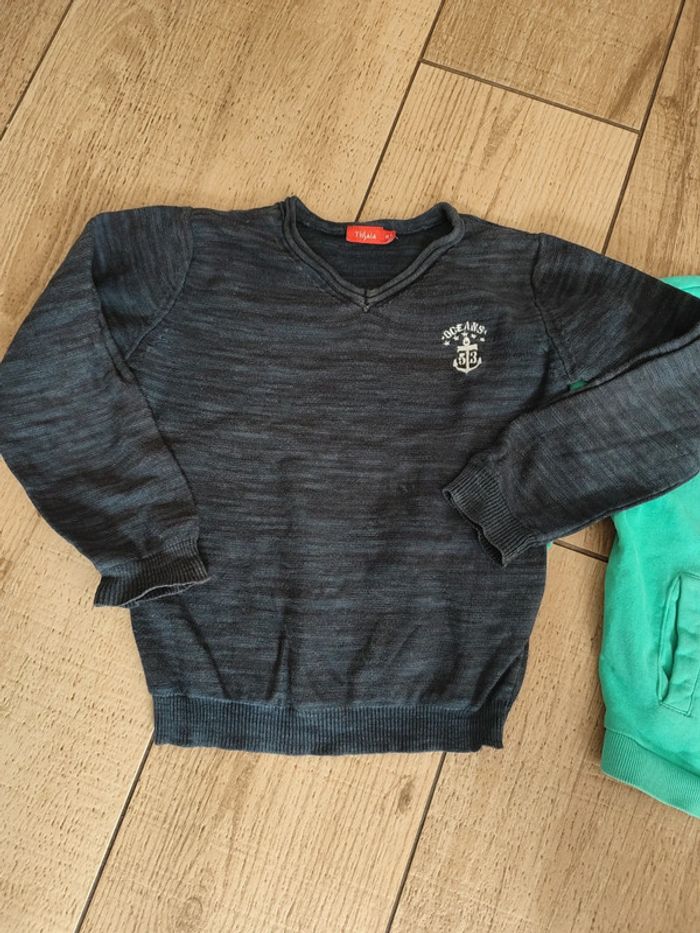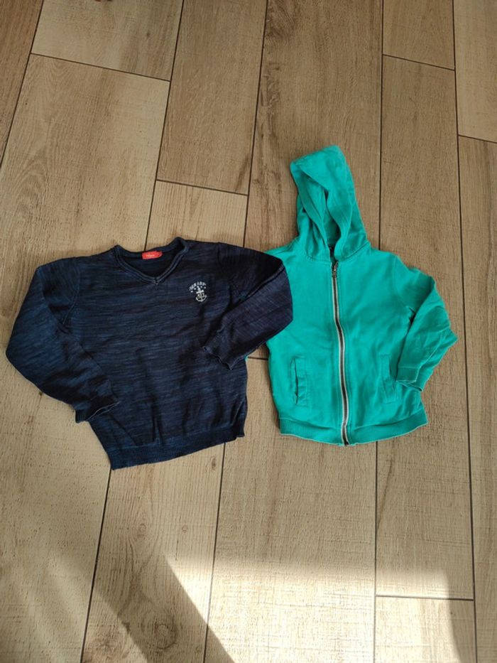 Gilet vert Kiabi en tbe et pull Tissaia en tbe