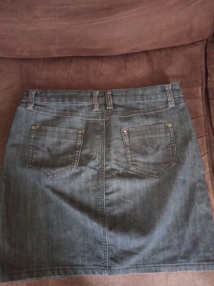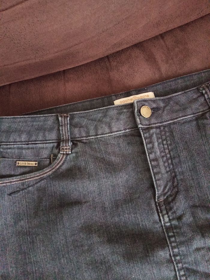 Jolie petite Jupe courte, en Jeans, Bleu Foncé Taille 40 "Cache Cache" - photo numéro 2