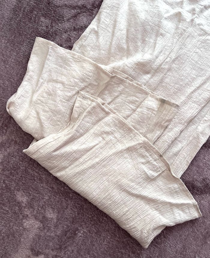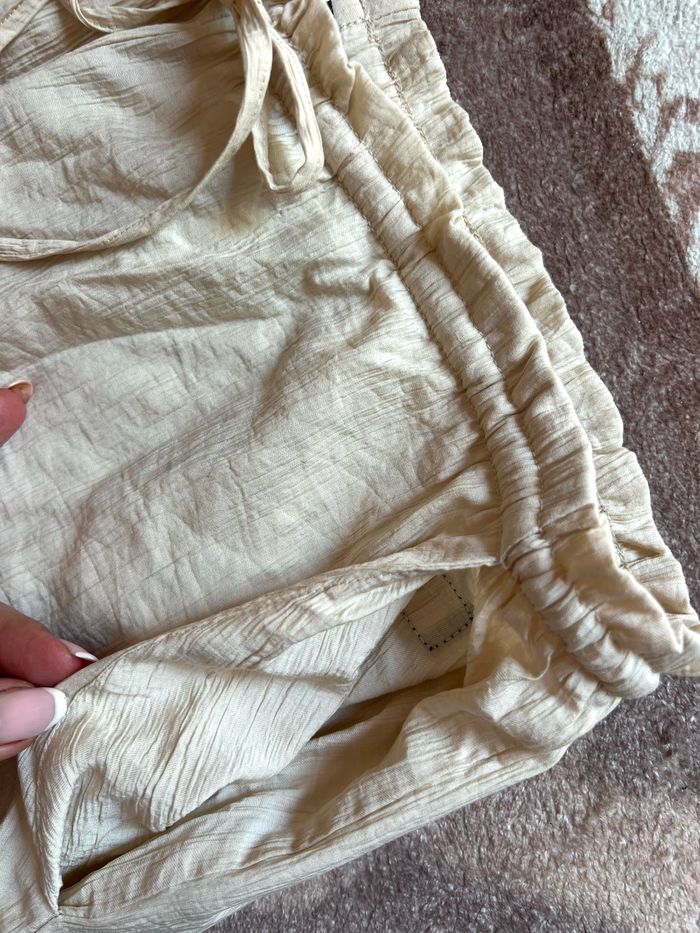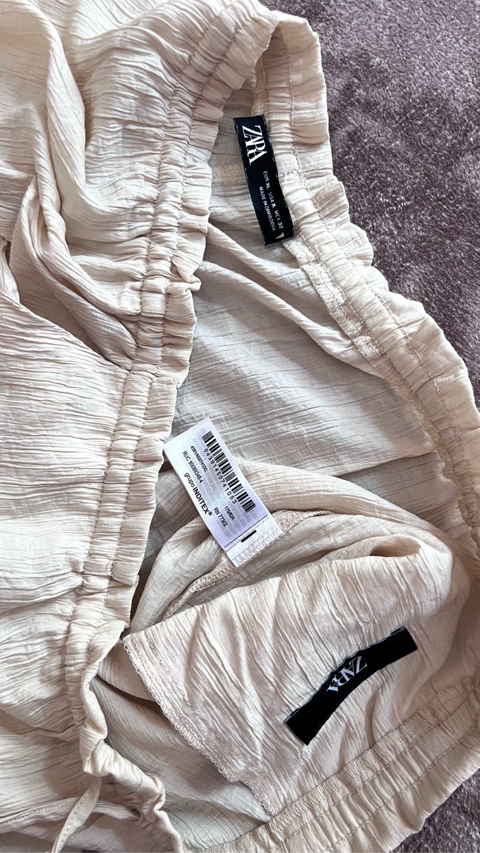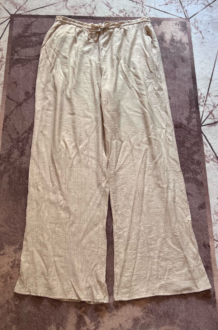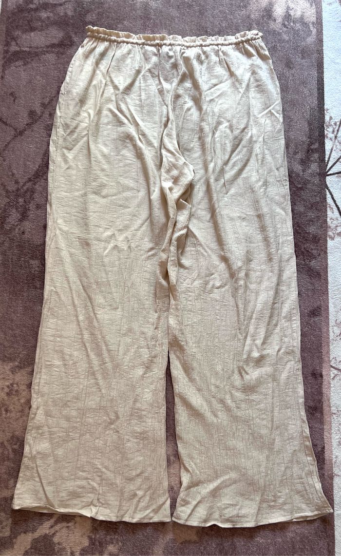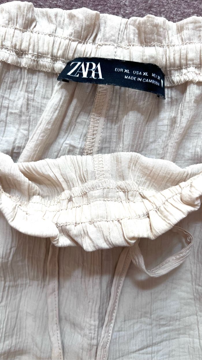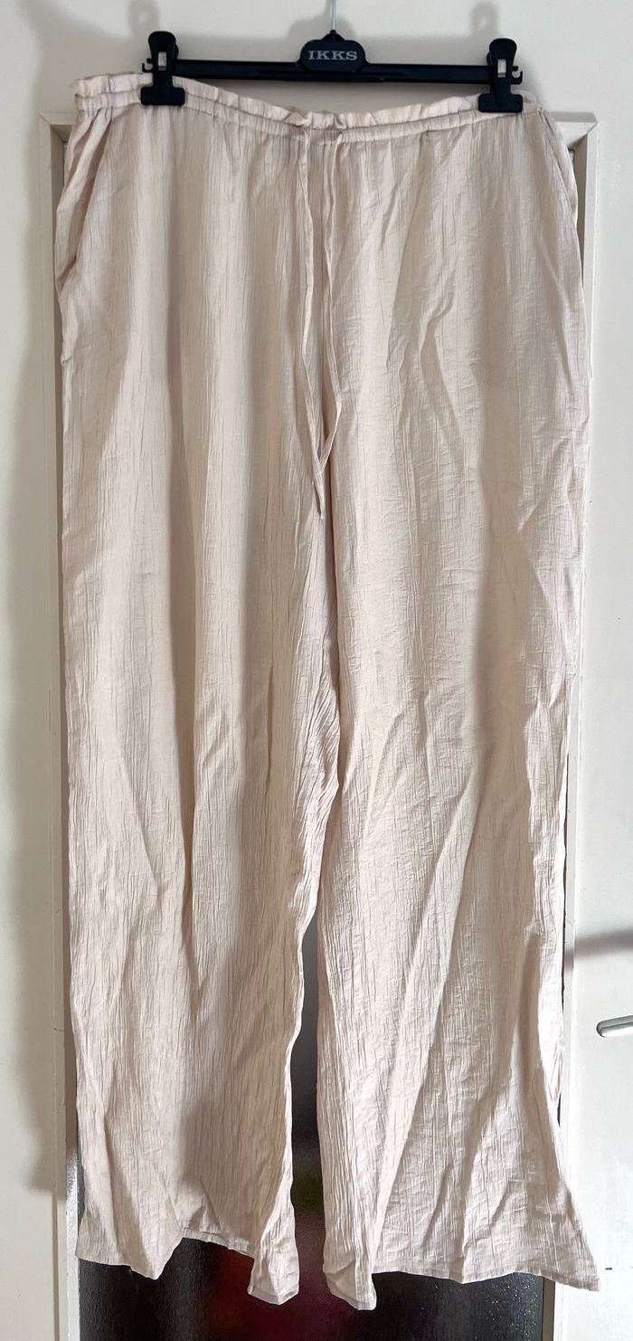 Si vous êtes grande ce pantalon est fait pour vous 🙂 Pantalon Zara léger Taille XL large Coloris beige Pour personne grande taille Très long 113 cm de longueur À nouer à la taille élastique 84 % viscose 16 % polyamide Très agréable pour la saison Deux poches Petites tâches discrètes au bas voir photo d'où son petit prix Très tendance 📩Je réponds rapidement aux messages 📦Envoi rapide et soigné