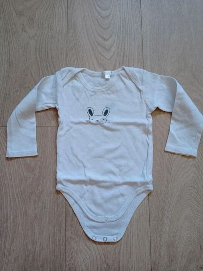 Body étoiles gris et vert Orchestra 18 mois 95% coton et 5% elasthanne Bodies bleu et blanc avec lapin 100% coton Le blanc a une petite tâche dans le dos voir photo 6 et un bout de manche tâché voir photo 9 #body #garçon #18mois #lolamalo50bebegarçon18mois