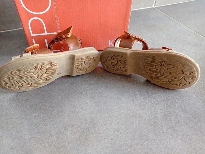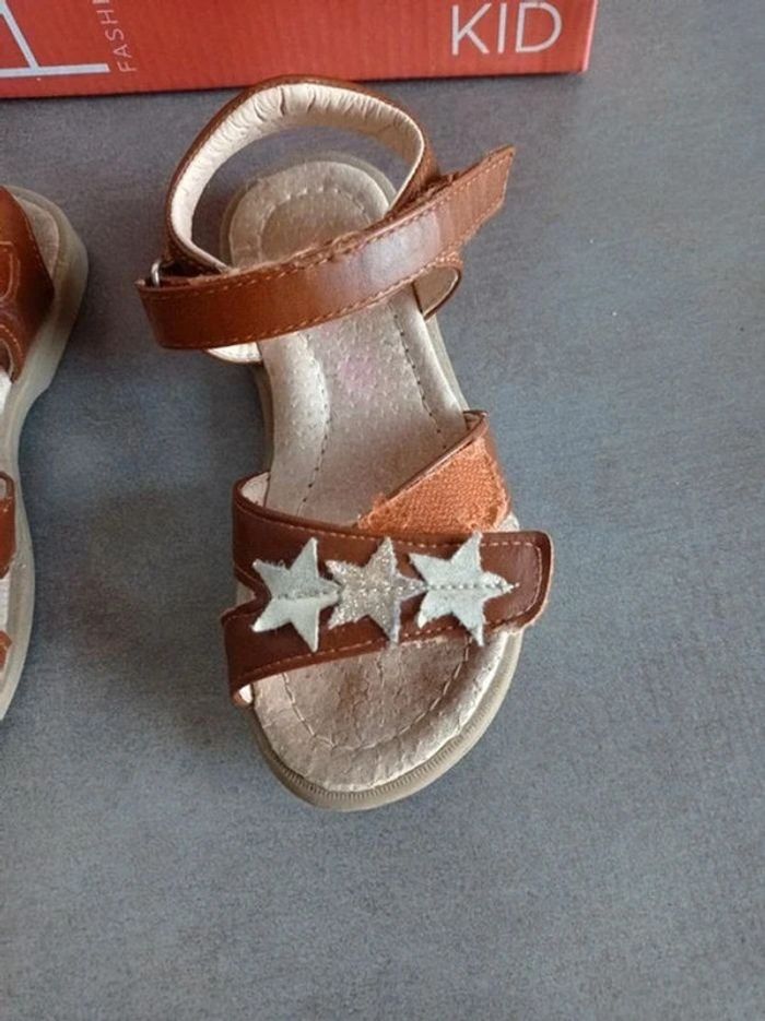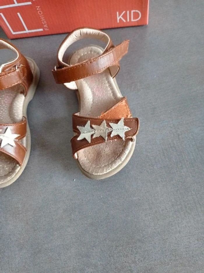 Sandales avec scratch sur le devant du pied et au niveau de la cheville #lolamalo50chaussurefille #sandale #fille #etoile #marron #27
