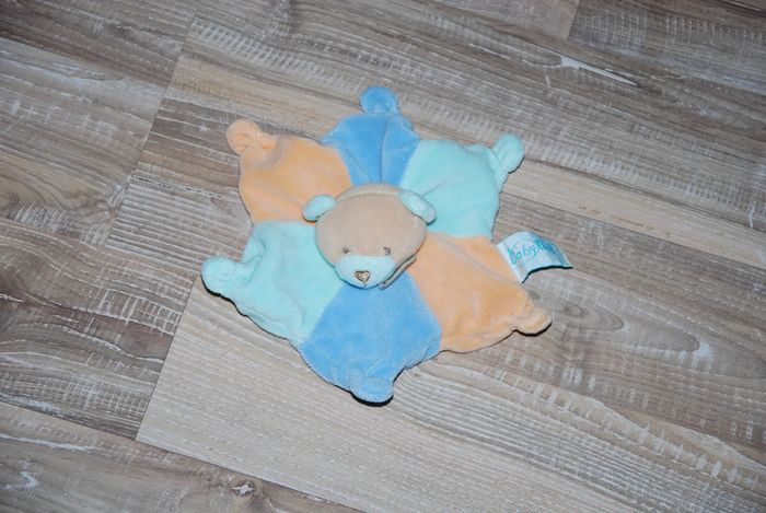 Doudou plat en forme d'étoile ours bleu orange BABY NAT 20X20 cm faisait parti d'une collection de plus de 200 doudous jamais câliné ni toutouillé