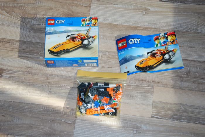 LEGO City - La voiture de compétition 60178 Monté une seule fois, jamais servi pour jouer. Toutes les pièces ont été vérifiées avec le carnet deux fois avant la remise en boîte, elle est donc complète le jouet est Neuf