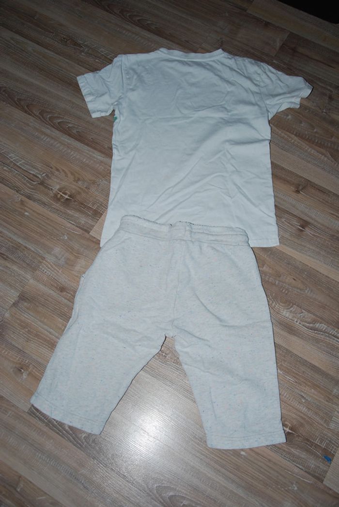 les couleurs du t-shirt sont très légèrement passées, l'ensemble reste en bon état servi quelques jours sur un été, pour un seul enfant environnement non fumeur t-shirt coton tape à l'œil et short coton éponge à l'interieur okaidi, élastiqué à la taille plus cordon de resserrage.