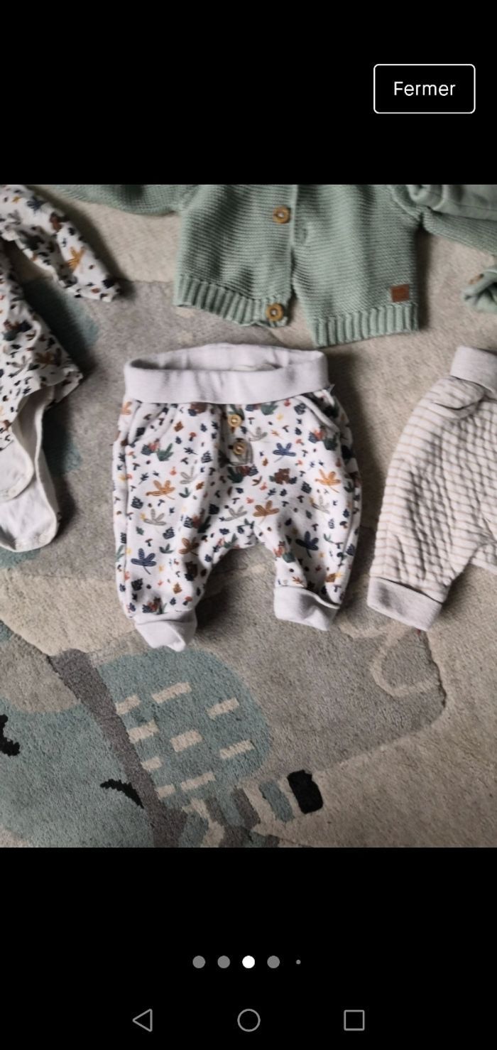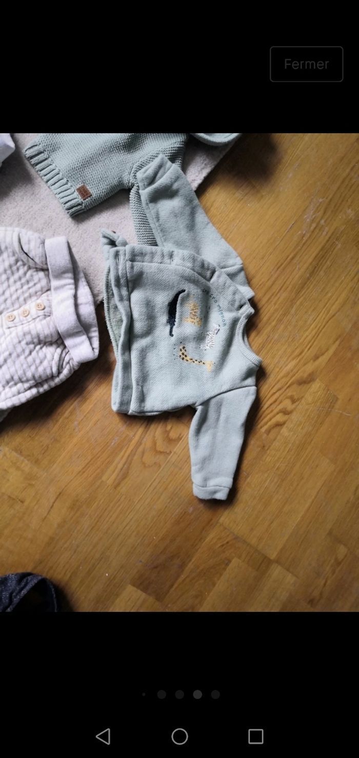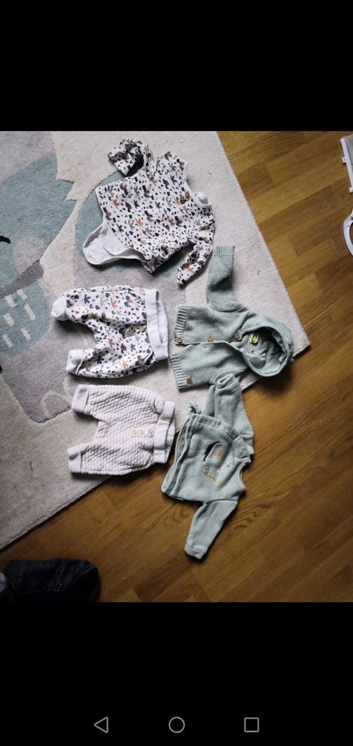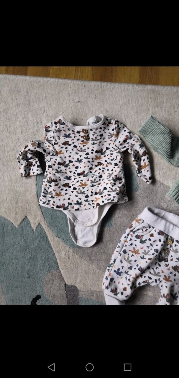 Ensemble de la nouvelle collection tape à l œil très peu porté Comprend 1 body manche longue 2 pantalons 1 gilet En 0 mois Et 1 pull en 1 mois Très peu porté Maison non fumeur