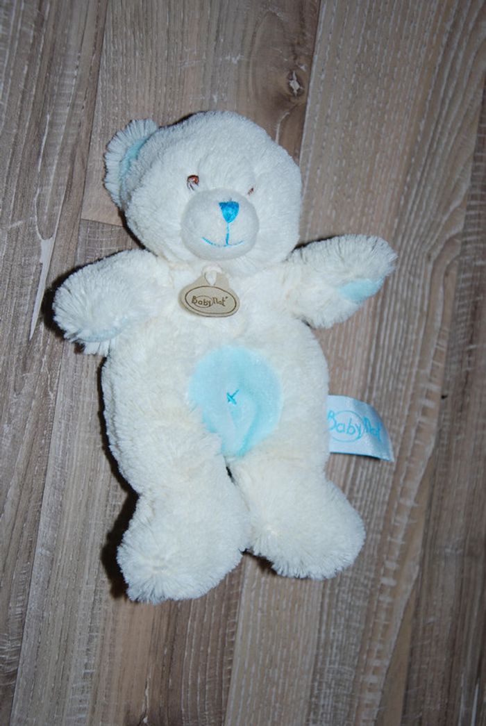 Doudou Ours Babynat Baby Nat' - Blanc bleu