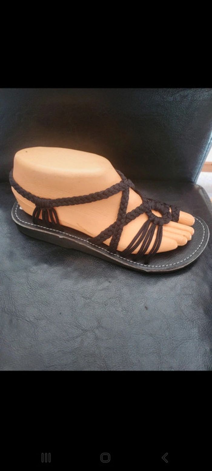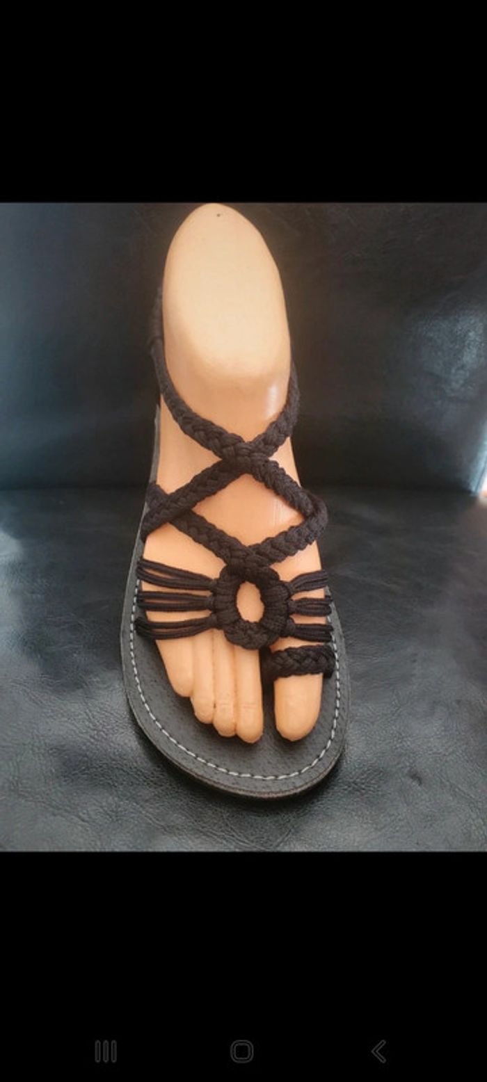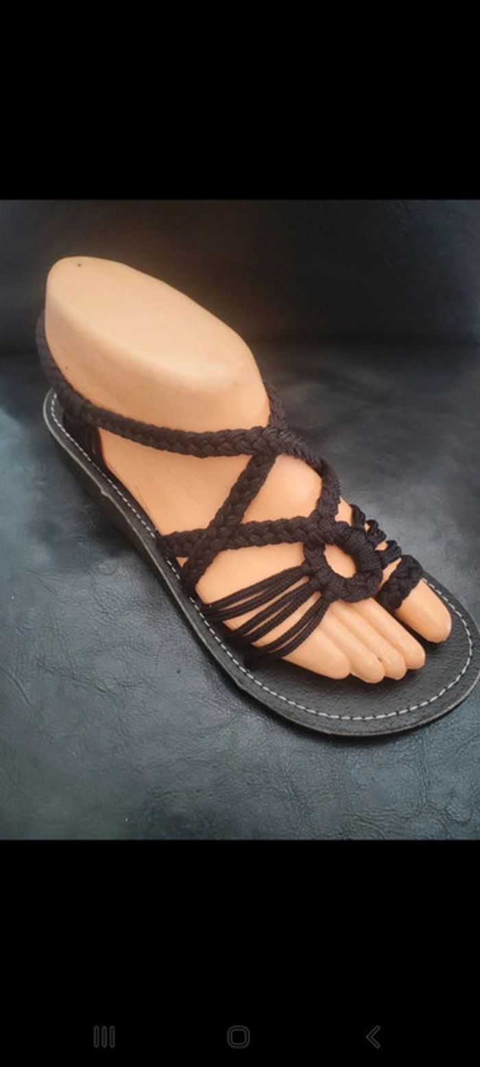 Sandales en corde tressées, ne décolore pas, ne se détend pas, semelle intérieure en cuir cousu (ne se décolle pas), pour les "régler" vous pouvez faire coulisser les cordes ou les écarter pour les mettre a la forme de votre pied, lavable en machine à 30 degrés, ne craint pas l'eau (Sauf le cuir à ne pas laissé séché au soleil). Plusieurs tailles et coloris.