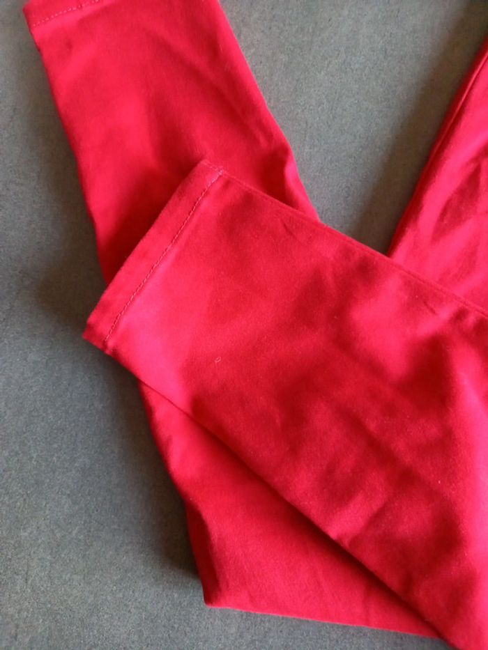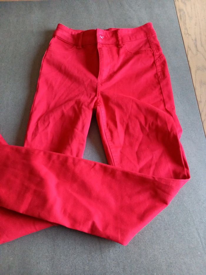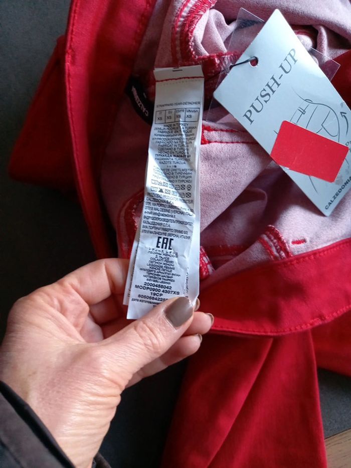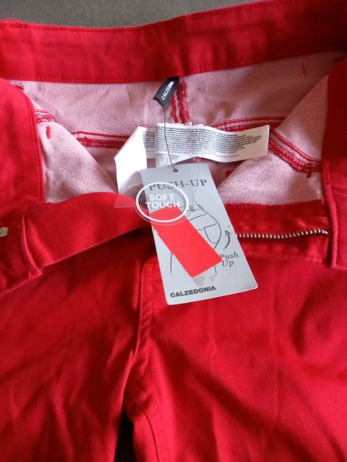 Neuf avec étiquette jamais porté juste essayé Couppe push up Toucher doux Belle qualité Calzedonia, bien élastique super agréable à porter Un peu trop long pour moi je mesure 1.58 mètres 2 poches à l'arrière Longueur totale 96 cms Largeur taille à plat 31 cms Conviendrait à une silhouette mince et élancée Rouge comme sur la première photo
