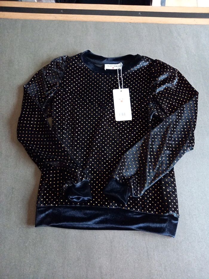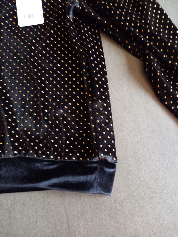 Neuf Collection hiver 2024.2025 Velours rasé Col rond Petites perles dorées Acheté 39 euros prix ferme non négociable... Taille S , peut correspondre à 1 XS