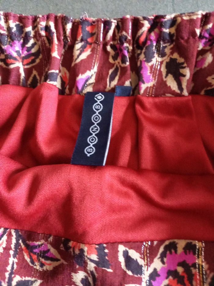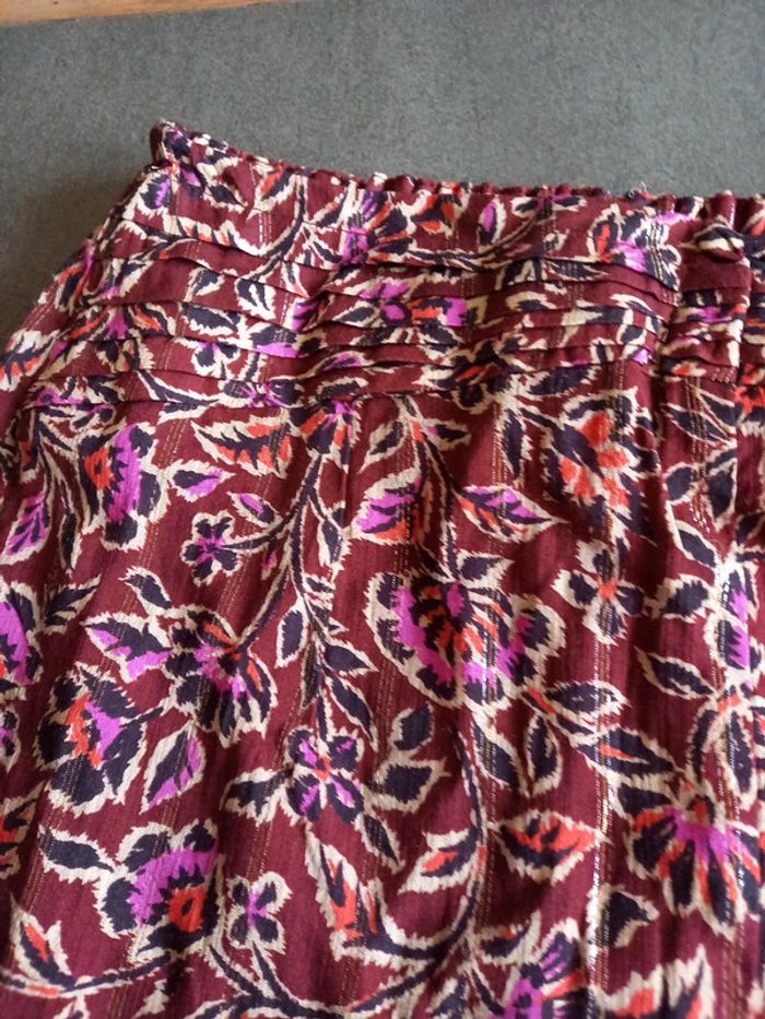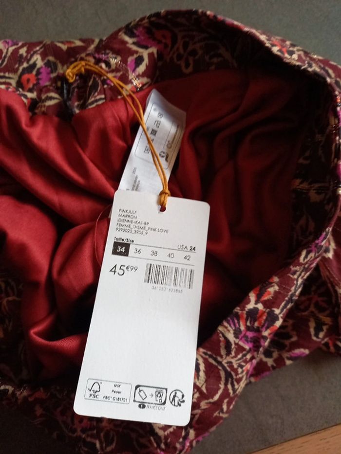 Marron brique, rose fushia, beige, orange et écru, fils lurex argenté