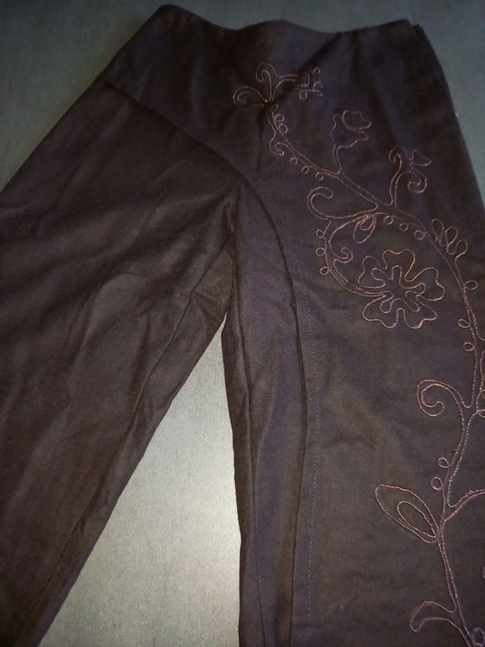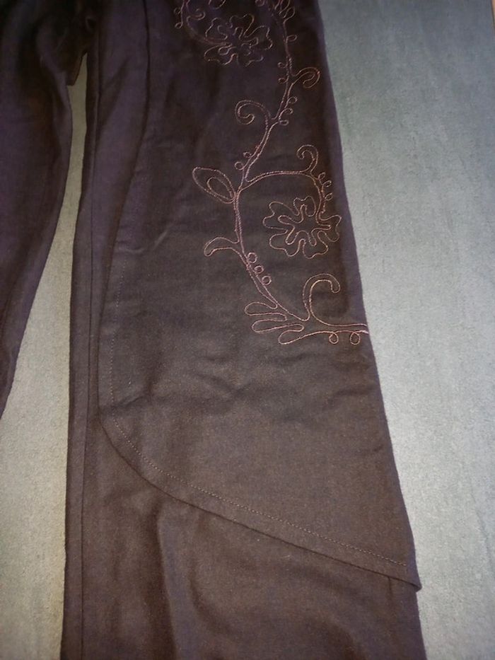 Pantalon chocolat laine et broderies - photo numéro 2