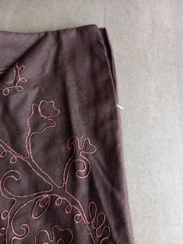Pantalon chocolat laine et broderies - photo numéro 4