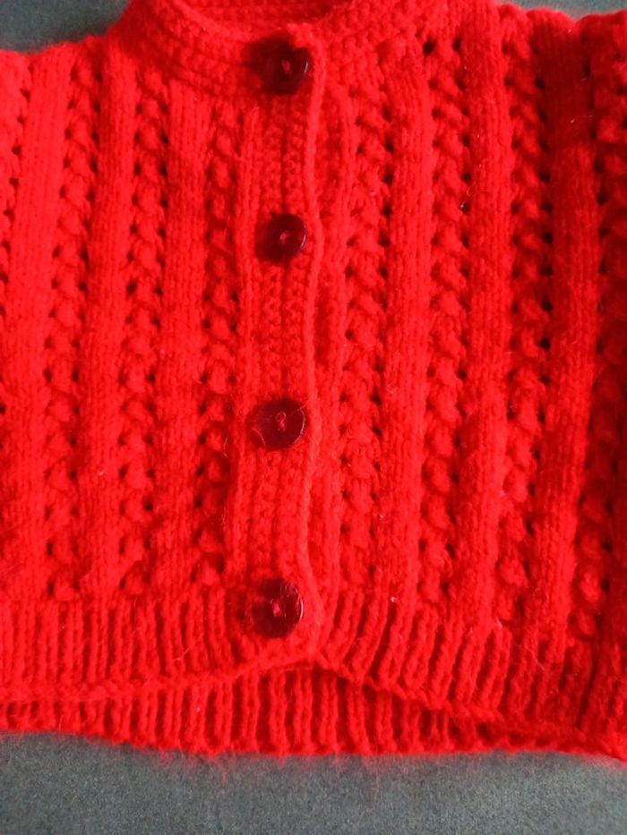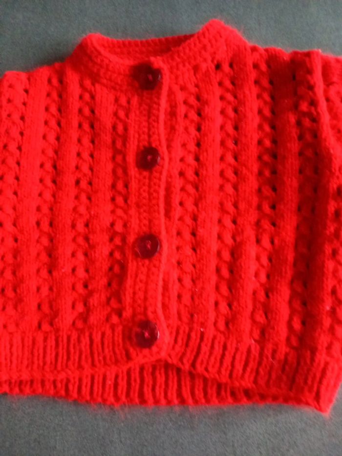 Tricoté à la main, se ferme par boutons en excellent état