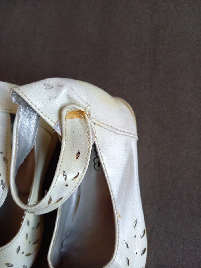 Se ferme par scratchs, quelques défauts voir photos en particulier sur la bride. Restent en bon état Confortables semelles épaisses avec talon légèrement compensé