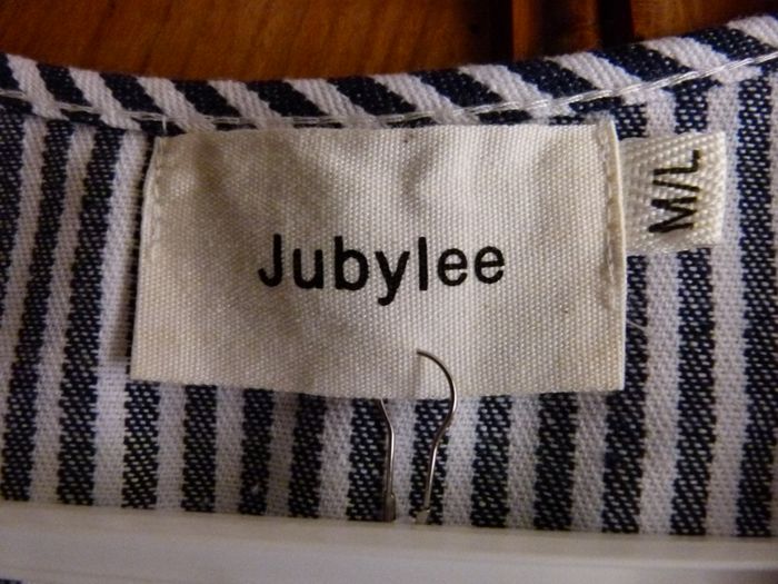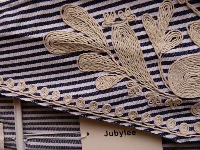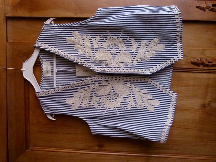 Petit gilet brodé neuf taille M/L (38/40) Coloris bleu et blanc beige polyester et coton Marque JUBYLEE