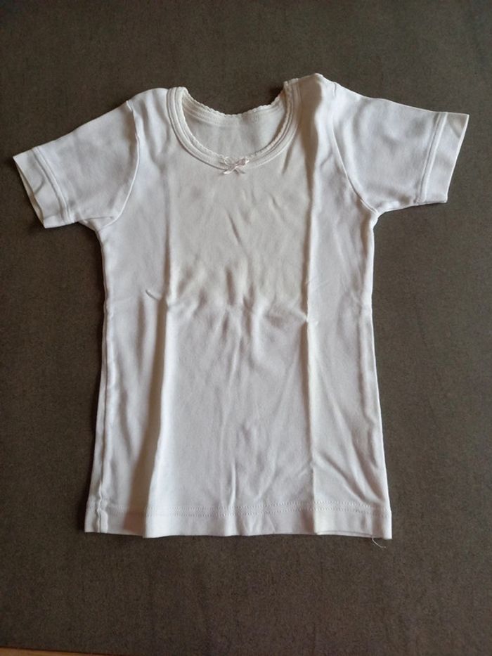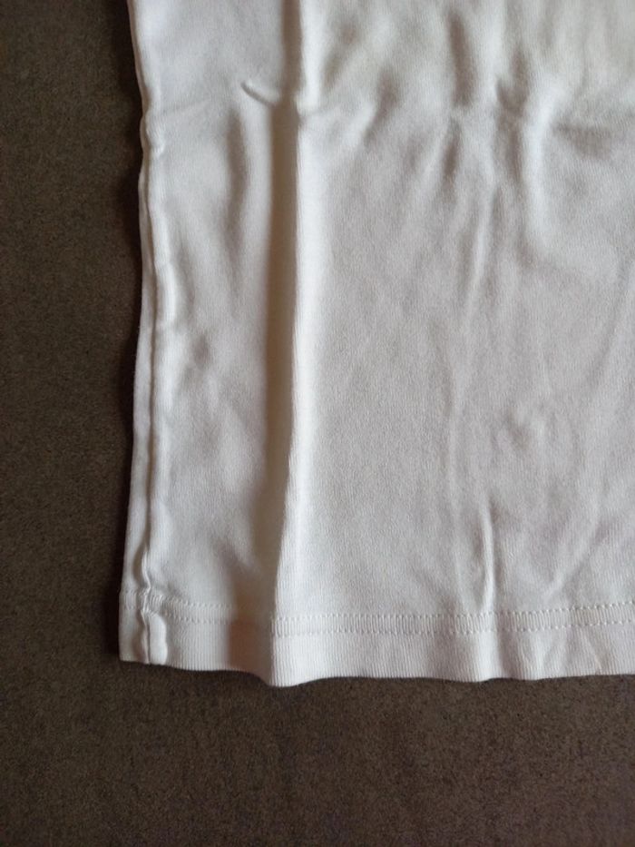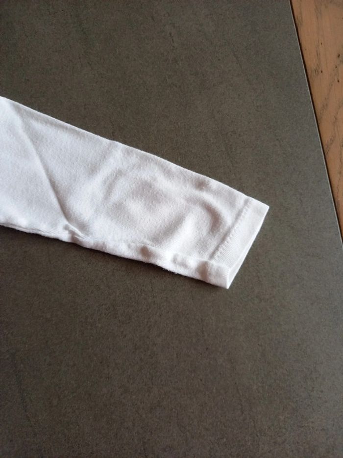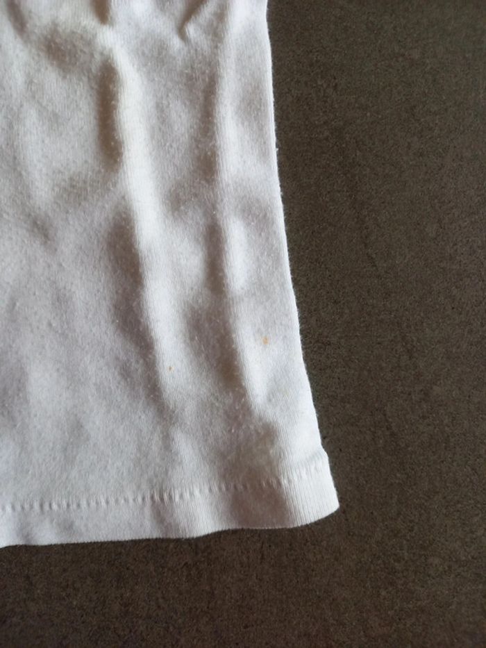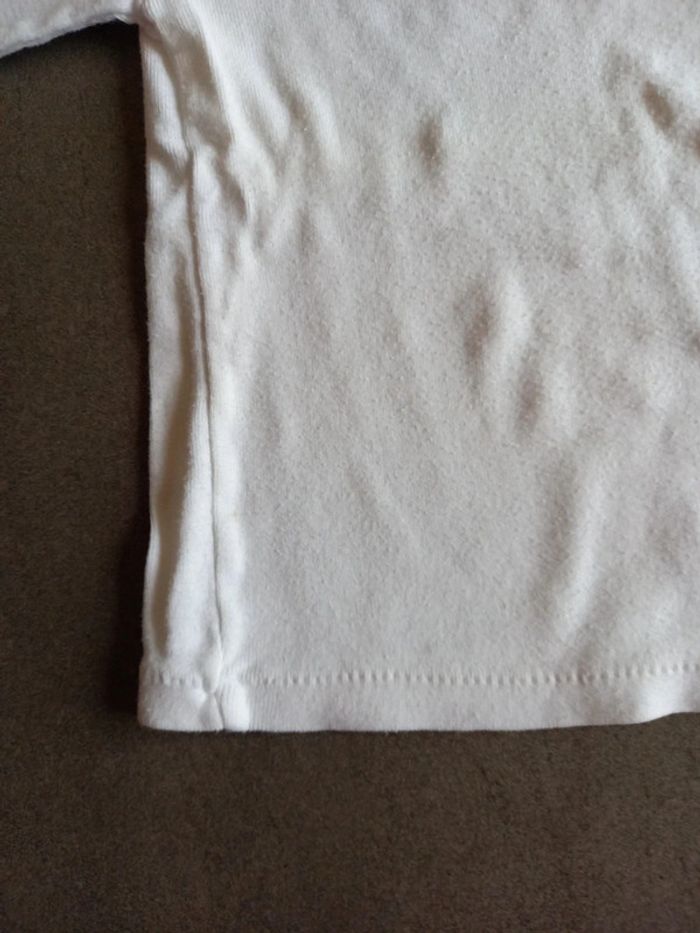 Les étiquettes de taille ont été retirées mais taille 12 mois 1 chemise blanche manches courtes 1 chemise banche manches longues, 1 légère trace sur le côté voir photos. 1 body rose manche longues