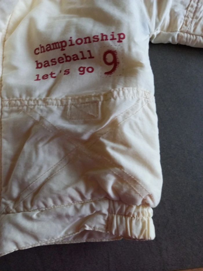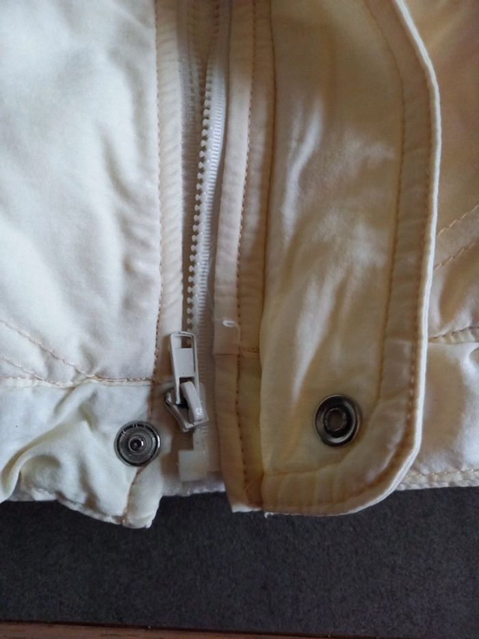 Blouson en excellent état, léger et très chaud, doublé polaire . Le blouson n'est pas tassé il a gardé tout son gonflant car peu utilisé. Fermeture zippée et 2 boutons pressions. 2 poches qui se ferment par scratchs 1 fause poche avec zippée.