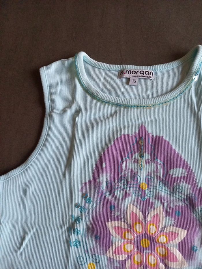 En excellent état pas de défaut Taille 16 ans mais correspond à 1 taille Xs Hauteur 45 cms Largeur poitrine 36 cms Très agréable à porter en maille 100% coton