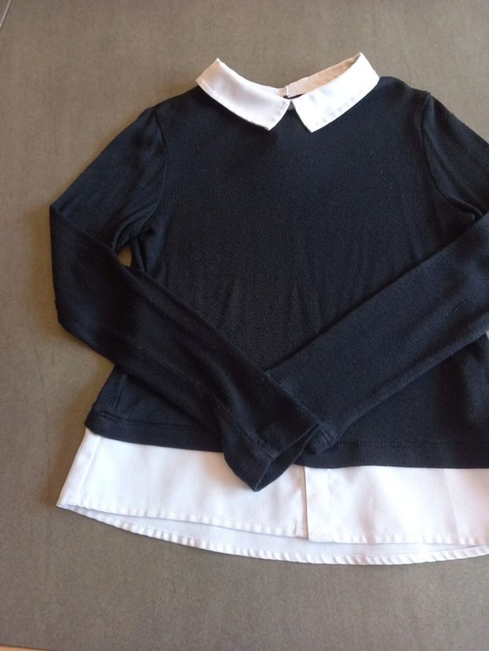 Pull fin noir col chemisier - photo numéro 1