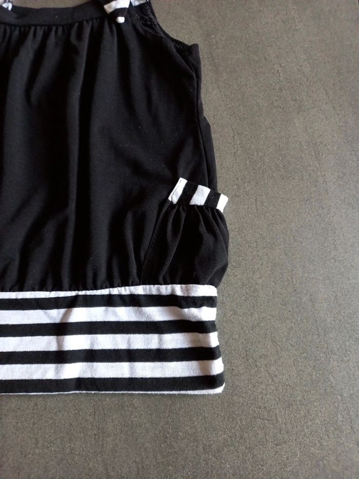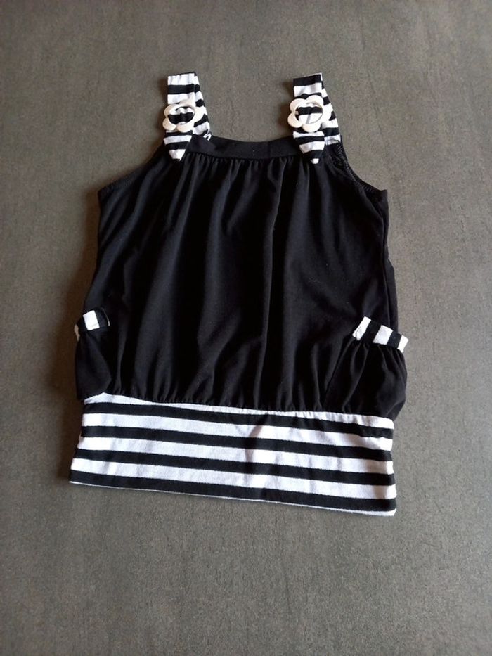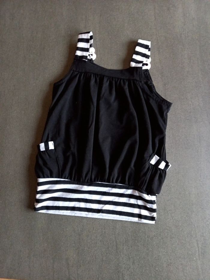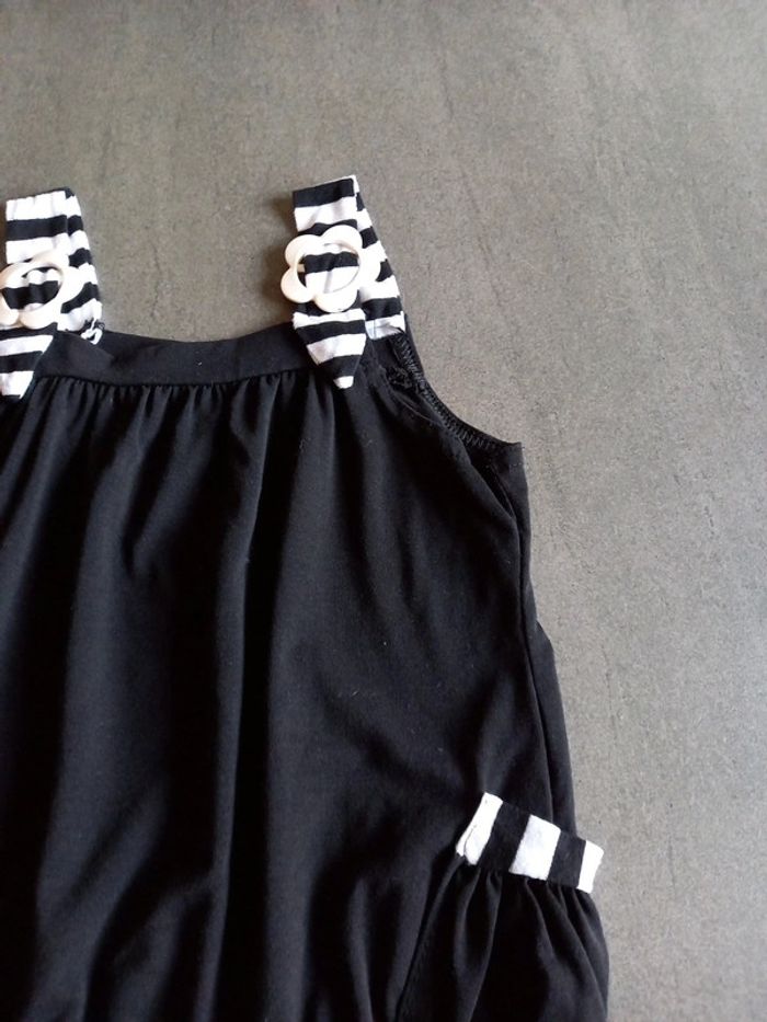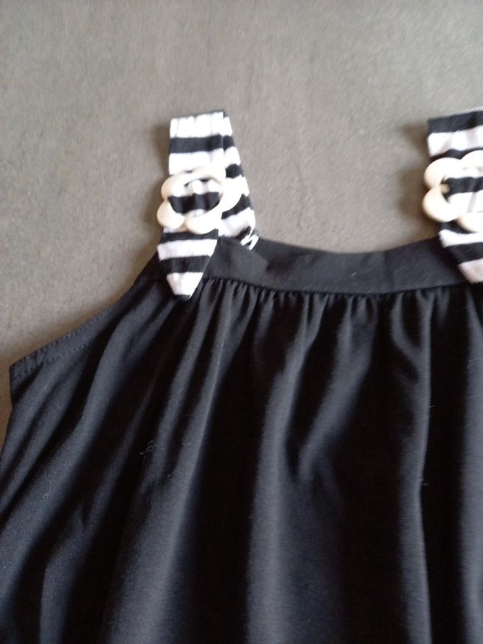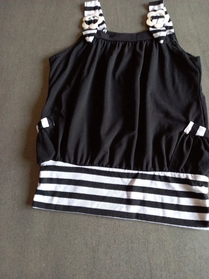 Peu porté Base et contour des poches noir et blanc avec fil pailleté Jolies bretelles L étiquette de la taille à été retirée