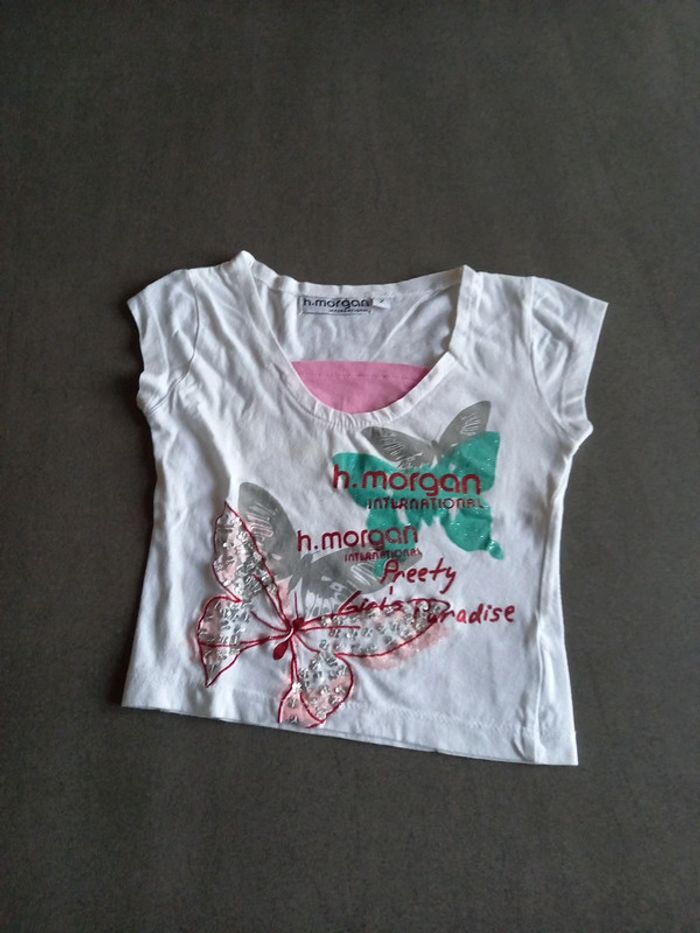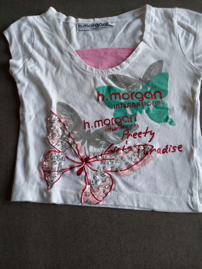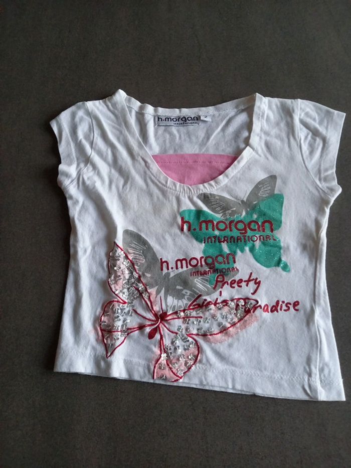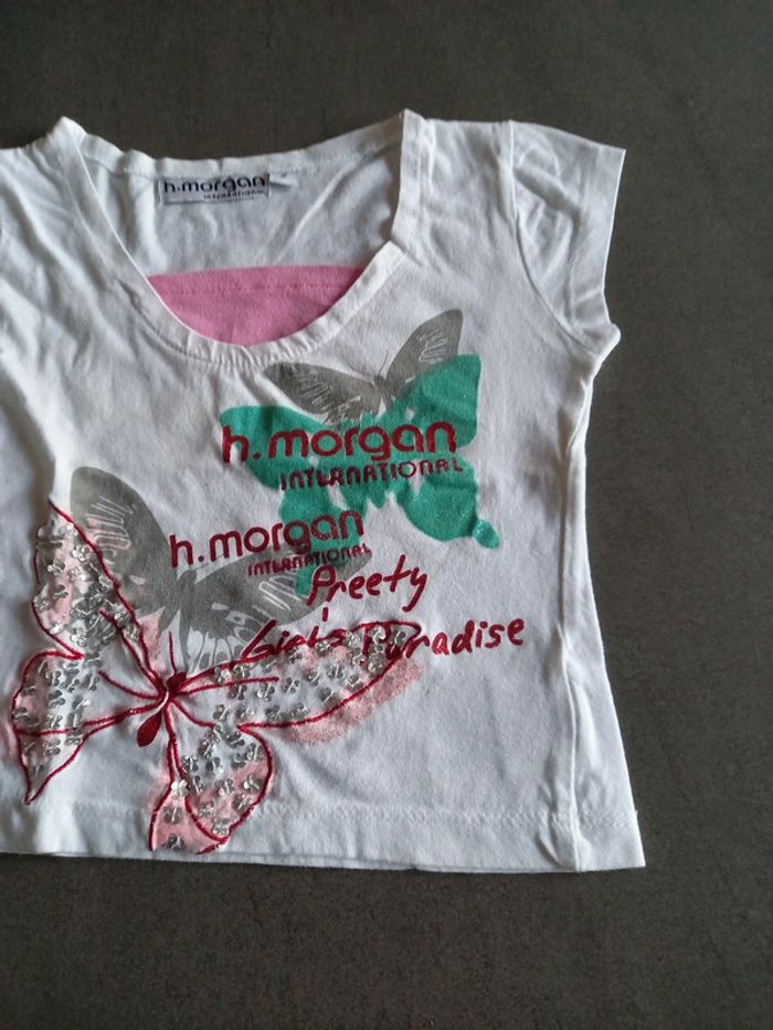 Tee shirt h.morgan peu porté motif papillon 🦋 Paillette et petites perles en forme de fleur Taille 2 ans
