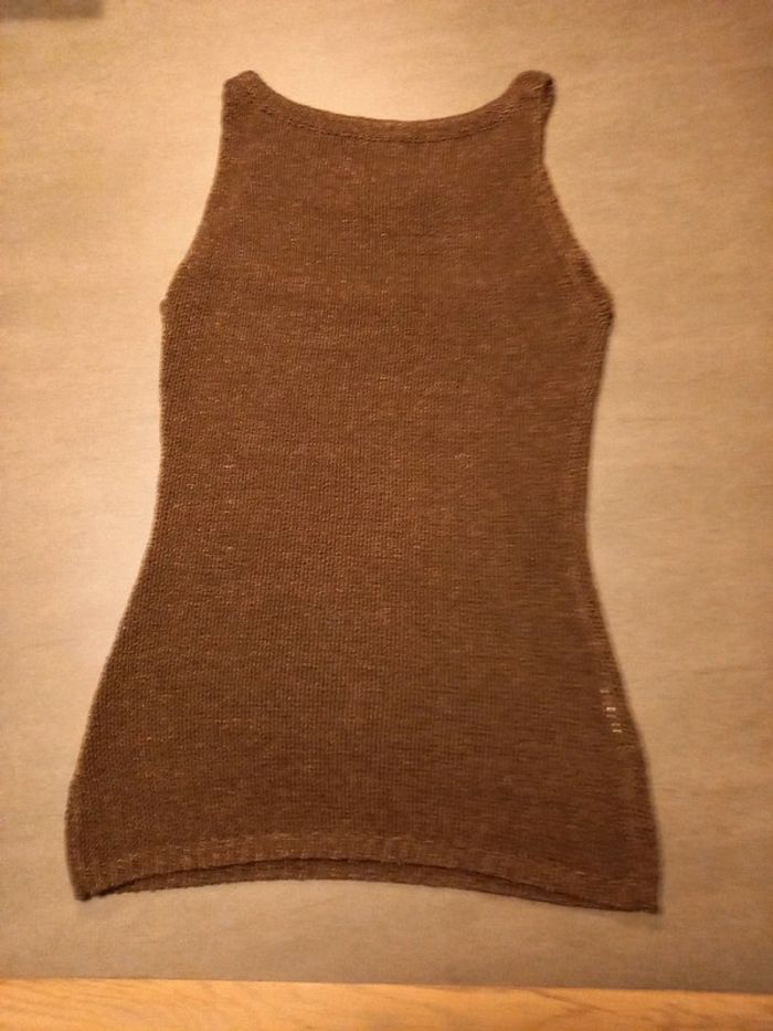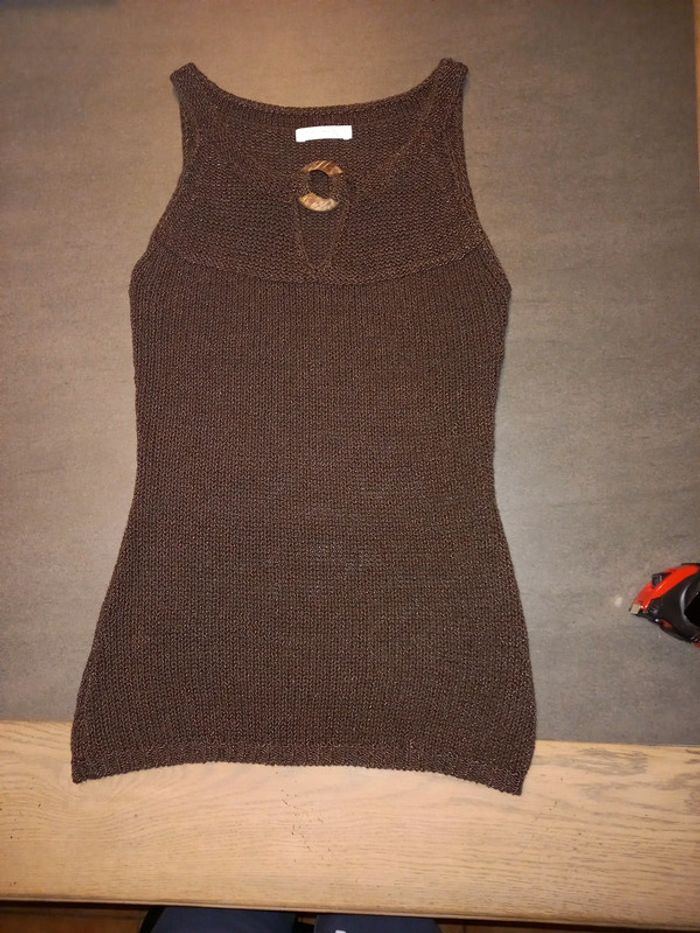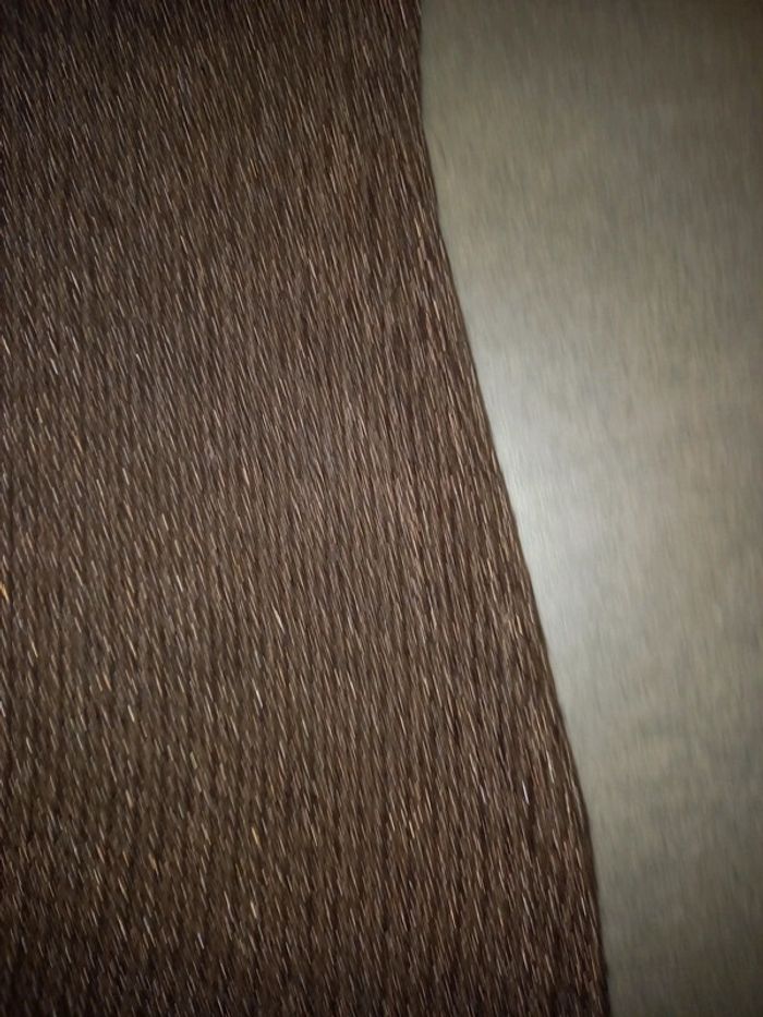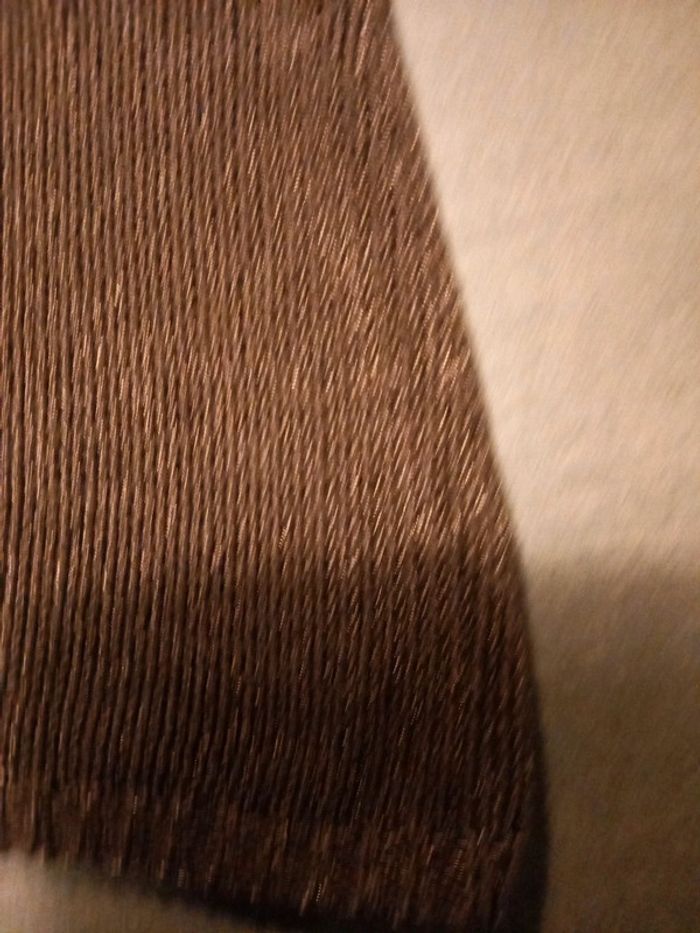 État irréprochable Matière légèrement brillante, couleur marron foncé Longueur 64 cms L'étiquette de la taille à été coupée donc on ne voit plus la taille voir photo