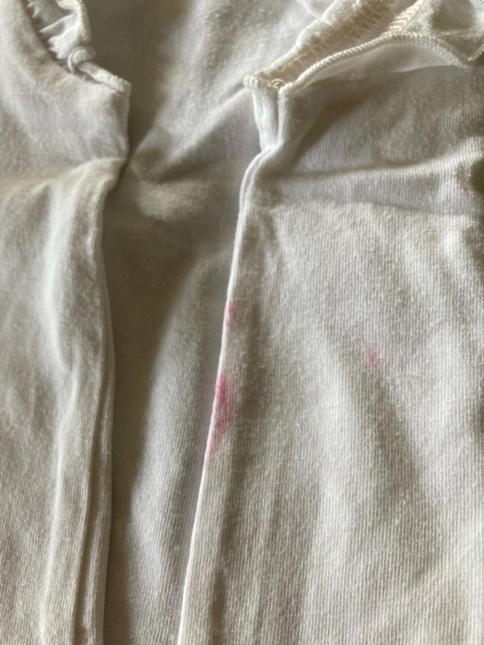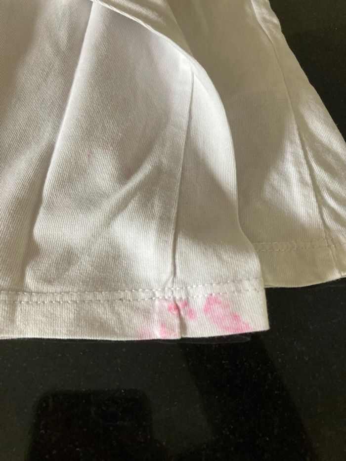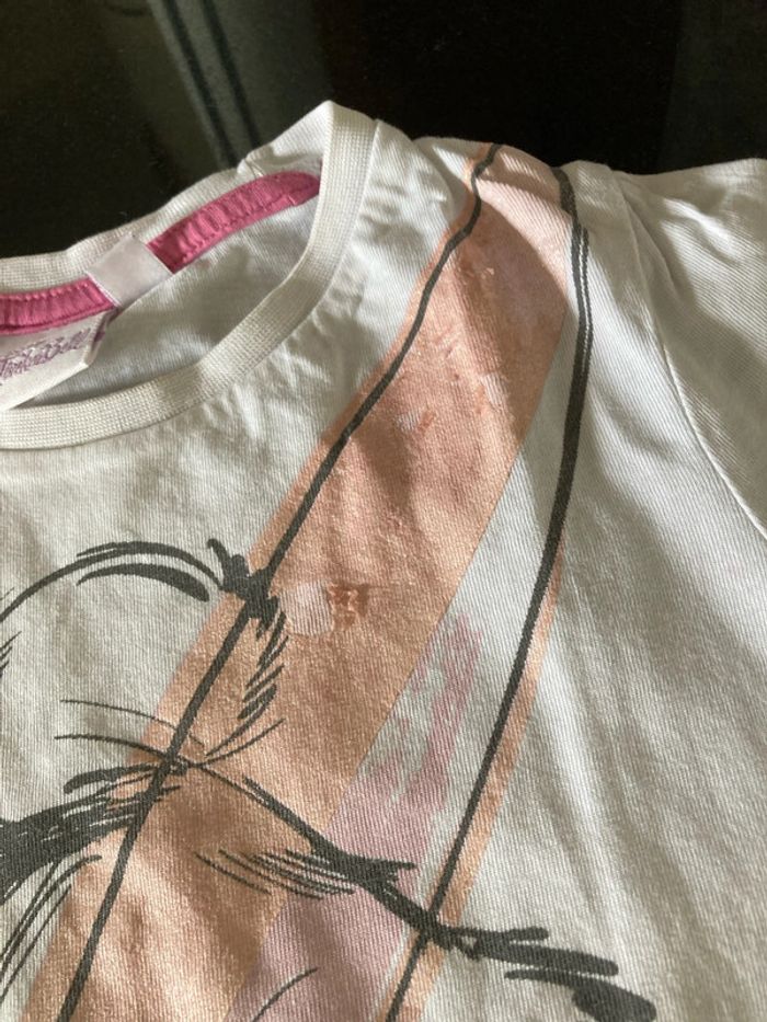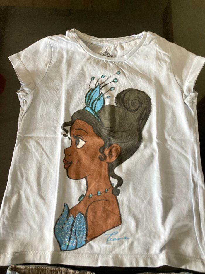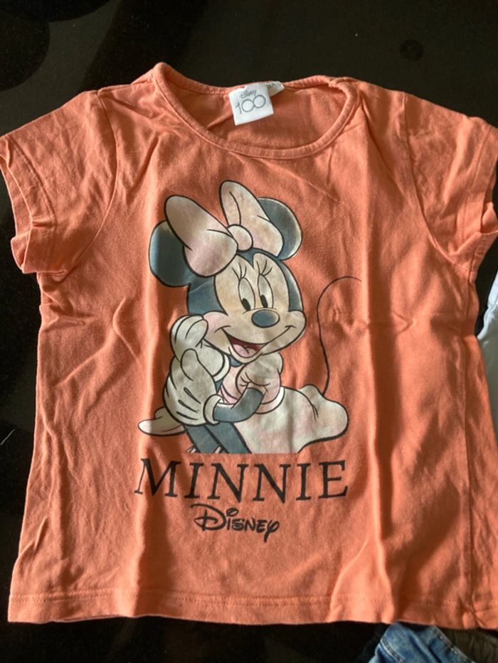 Une jupe en jean vertbaudet Deux gilets fin à boutons Cinq t shirts manches courtes Disney Deux taches sur pan pan Une tache sur fée clochette Le reste est en parfait état