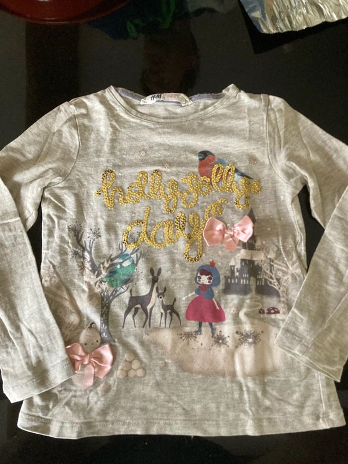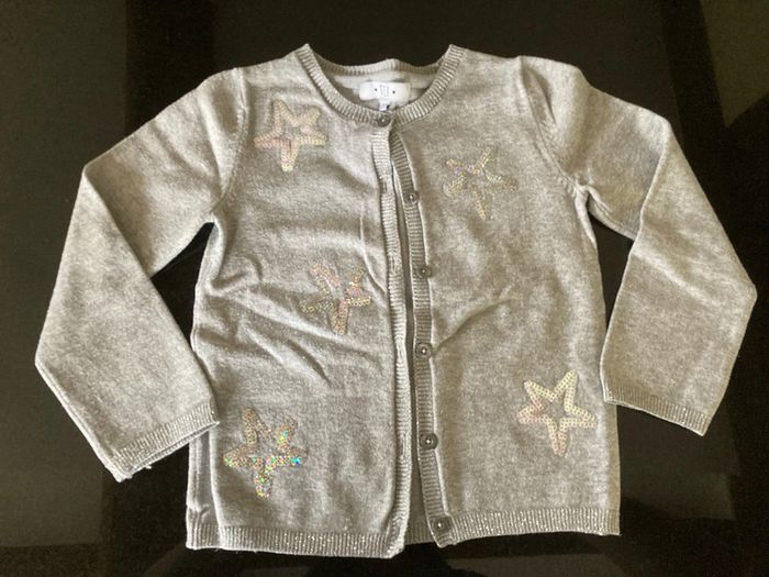 Un petit gilet gris avec étoile à paillette Un haut manche longue H&M Un pantalon style legging gemo