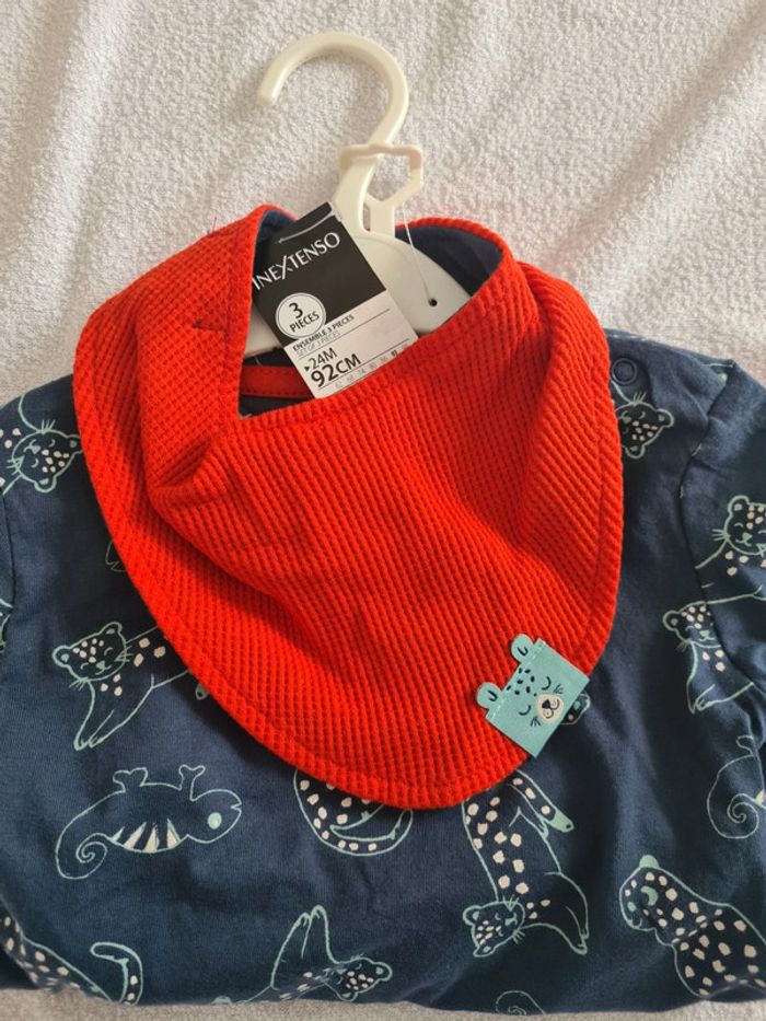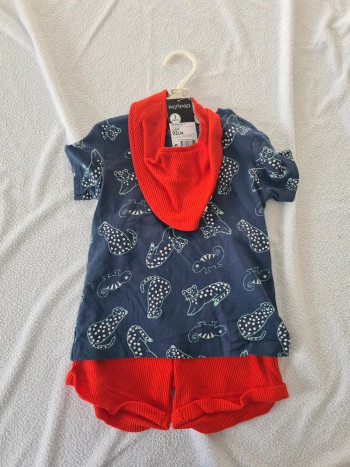Ensemble Inextenso neuf composé d'un t-shirt, d'un short et d'un bavoir bandana. Pour retrouver toutes mes annonces vêtements garçon 2 ans : #ink33160_garçon_2ans