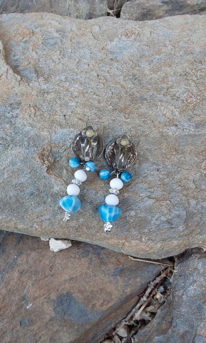 Boucles d oreilles bohème hippie chic bleu vintage argentée Longueur environ 5,5 cm Argentées avec des perles bleues et blanches Acier inoxydable #legrenierdeprovencebijoux #bijouxboheme #bijouxbleus #bleu