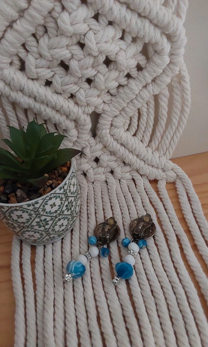Boucles d oreilles bohème hippie chic bleu vintage argentée - photo numéro 6