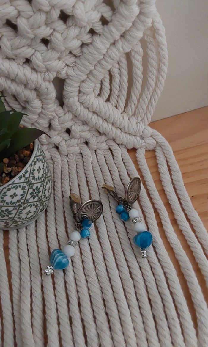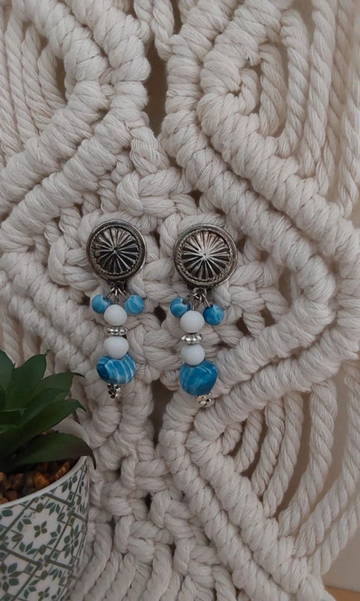 Boucles d oreilles bohème hippie chic bleu vintage argentée
