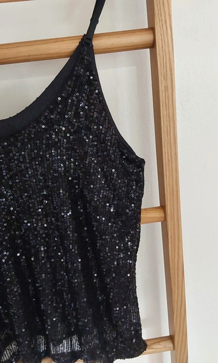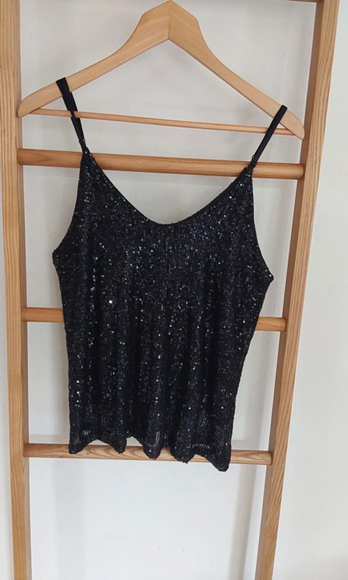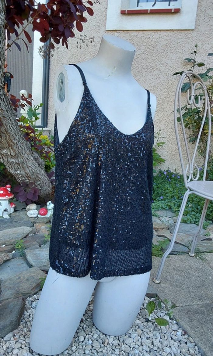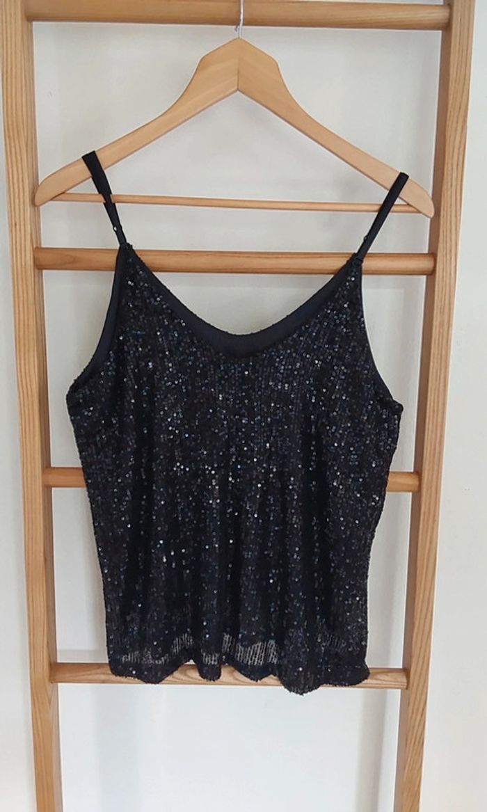 Joli haut débardeur top noir perlé T 40 - photo numéro 11