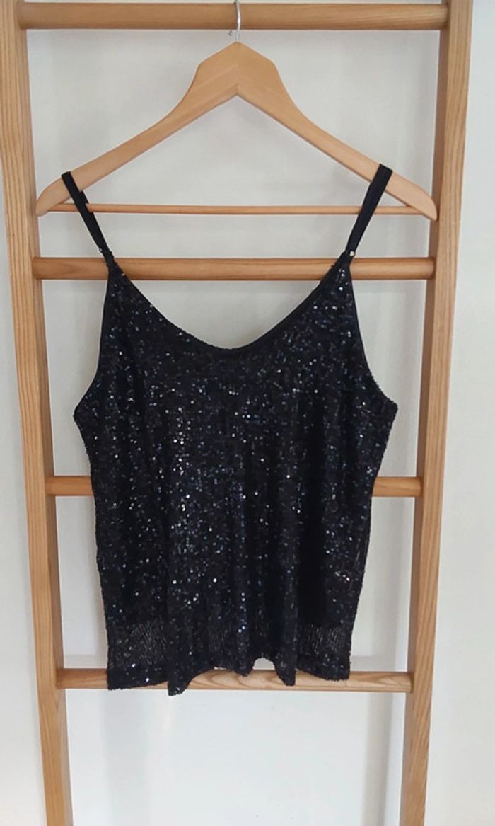 Joli haut débardeur top noir perlé T 40 - photo numéro 2