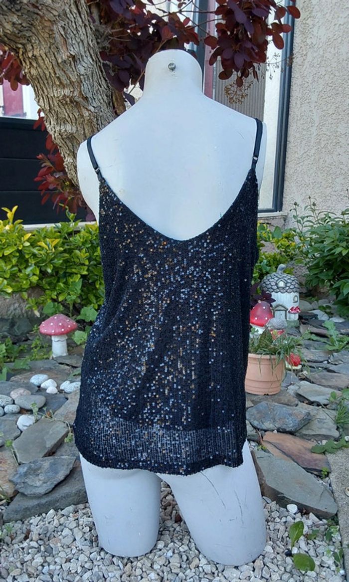 Joli haut débardeur top noir perlé T 40 - photo numéro 8