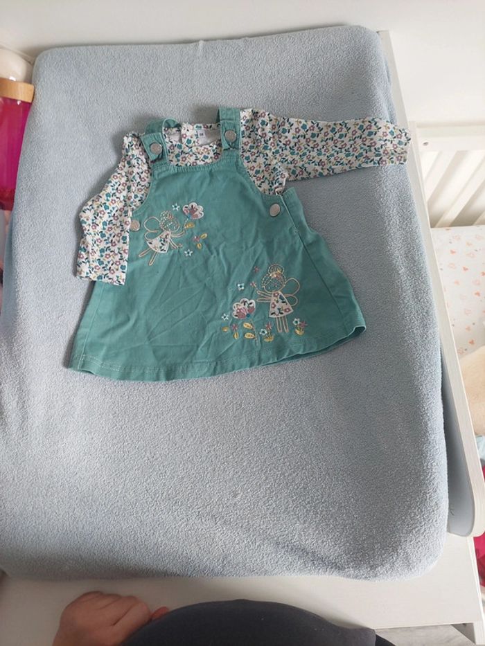 Superbe ensemble bébé fille robe en jean et son sous pull Très printanier
