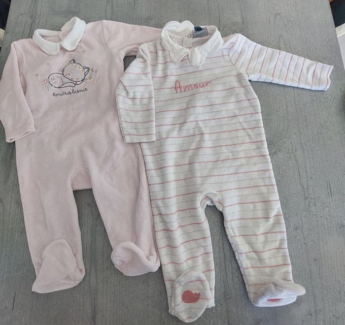 Lot x2 pyjamas en velour 9 mois - photo numéro 1
