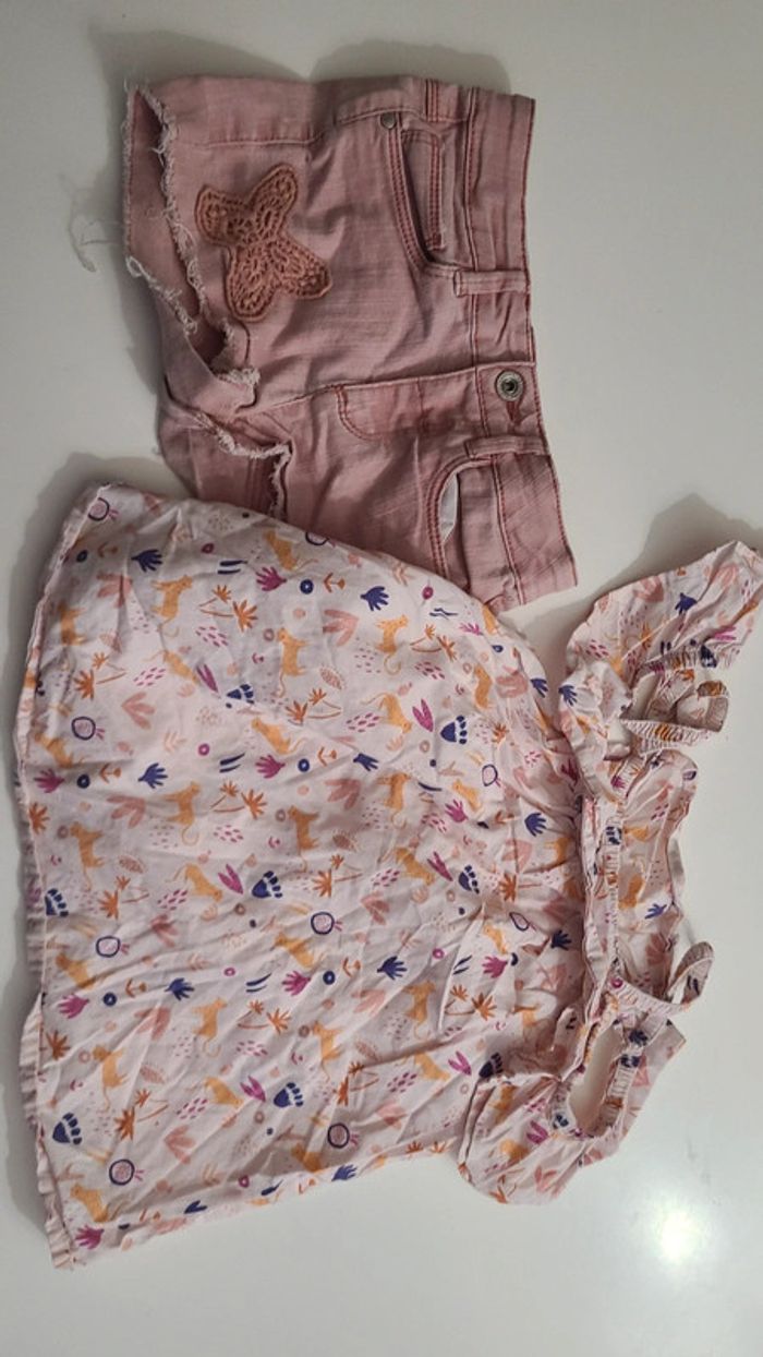 Blouse epaule denudé motif safari Short jean broderie (7 ans)