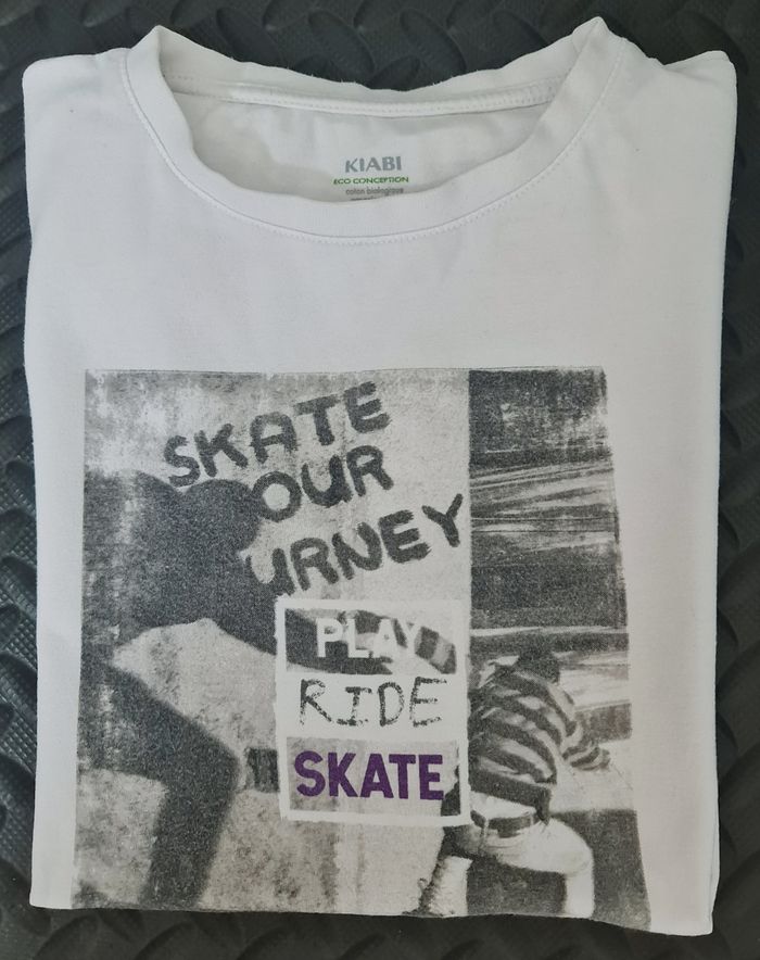 A la vente, en bon état, ce petit tee-shirt blanc. Marque "KIABI". En semaine, cet article peut vous être déposé à l'Espace Européen de l'entreprise, Schiltigheim.