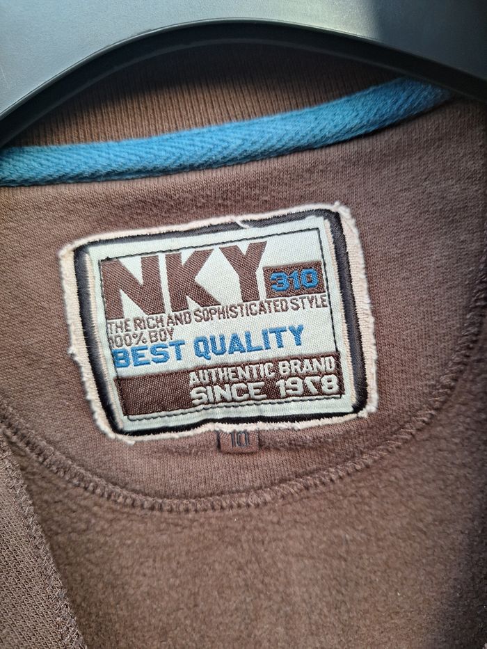 Gilet zippé Marque NKY Taille 10 ans Matière 55% coton 45% polyester Couleur marron Imprimé avec motif de la marque en bleu 2 poches Intérieur polaire Très bon état juste légèrement blanchi 🚨 Réductions activées sur les lots 🚨 🟡 2 articles -5% 🟠 3 articles -10% 🔴 5 articles et plus -15% #10ansgarconevaura76 #gilet #sweat #pull #zippé #nky #10ans