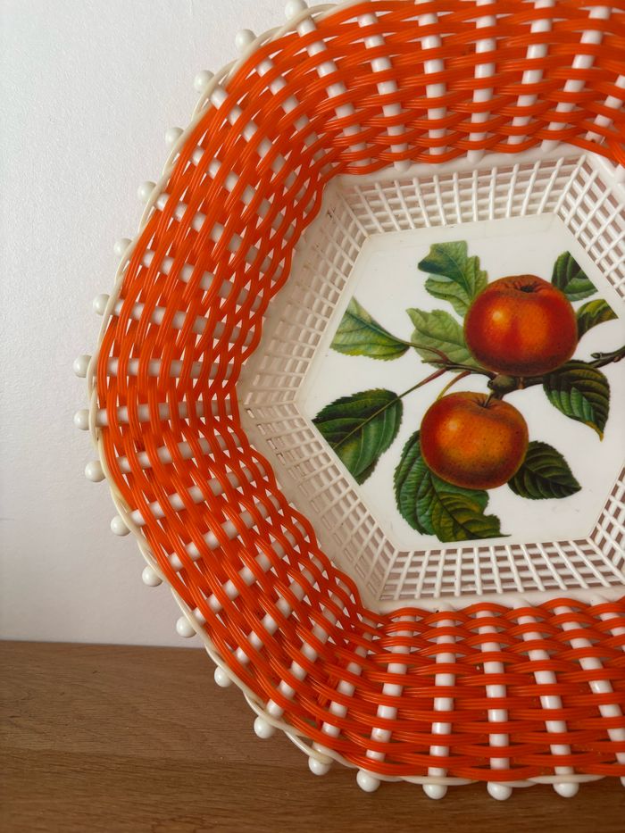 Vintage corbeille en plastique scoubidou orange Plastona - photo numéro 4