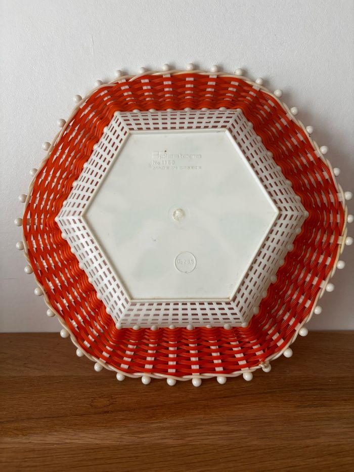 Vintage corbeille en plastique scoubidou orange Plastona - photo numéro 5