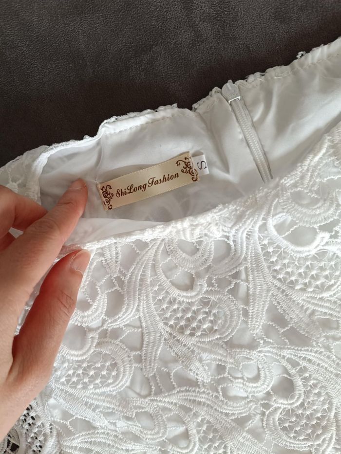 Robe blanche à manches courtes et col ras du cou en dentelle Taille S ShiLong Fashion - photo numéro 7