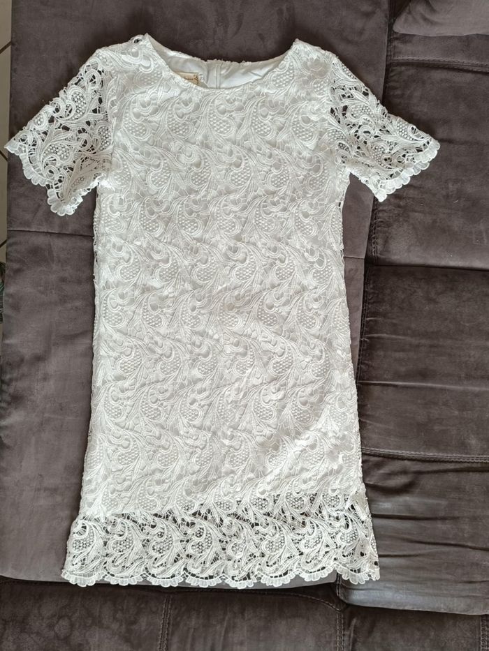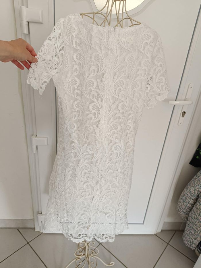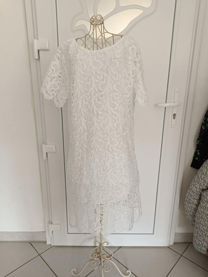 Neuve Acheté 30€ + frais de livraison + frais de douane #Robe #blanche #manchescourtes #col #rasducou #dentelle #TailleS #taille36 #milano #ShiLongFashion