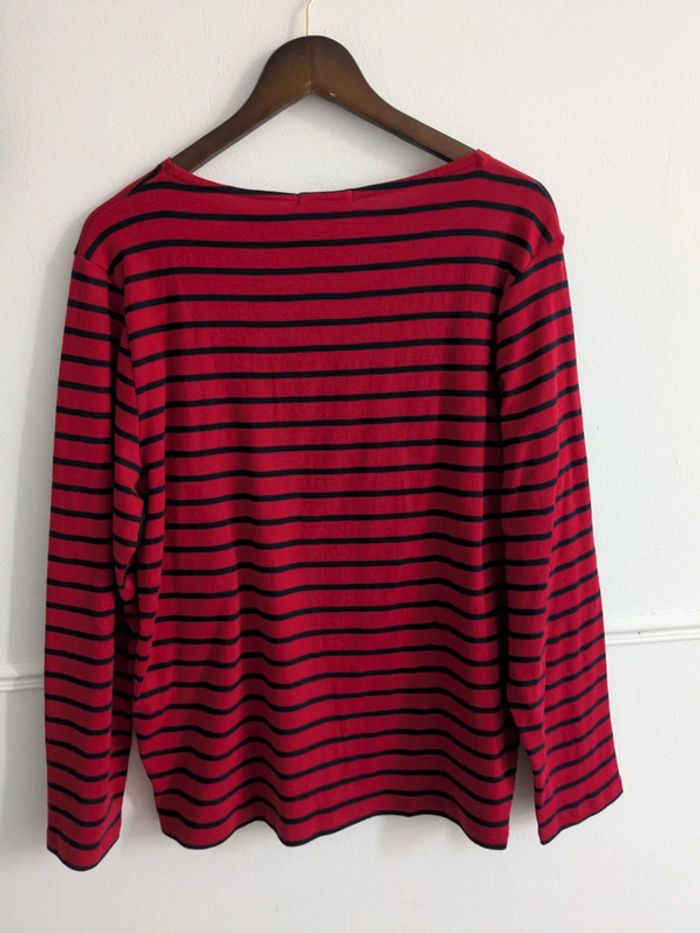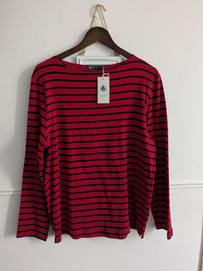 Ce tee-shirt mixte à manches longues est inspiré du fit de la marinière de l'homme et confectionné en côte 1X1 unie. Il reprend l'encolure et la coupe de notre marinière homme et se pare de la fameuse rayure marinière. On note les fentes sur les côtés en bas. Un tee-shirt à porter légèrement plus grand comme si on l'avait emprunté dans le vestiaire de son homme !