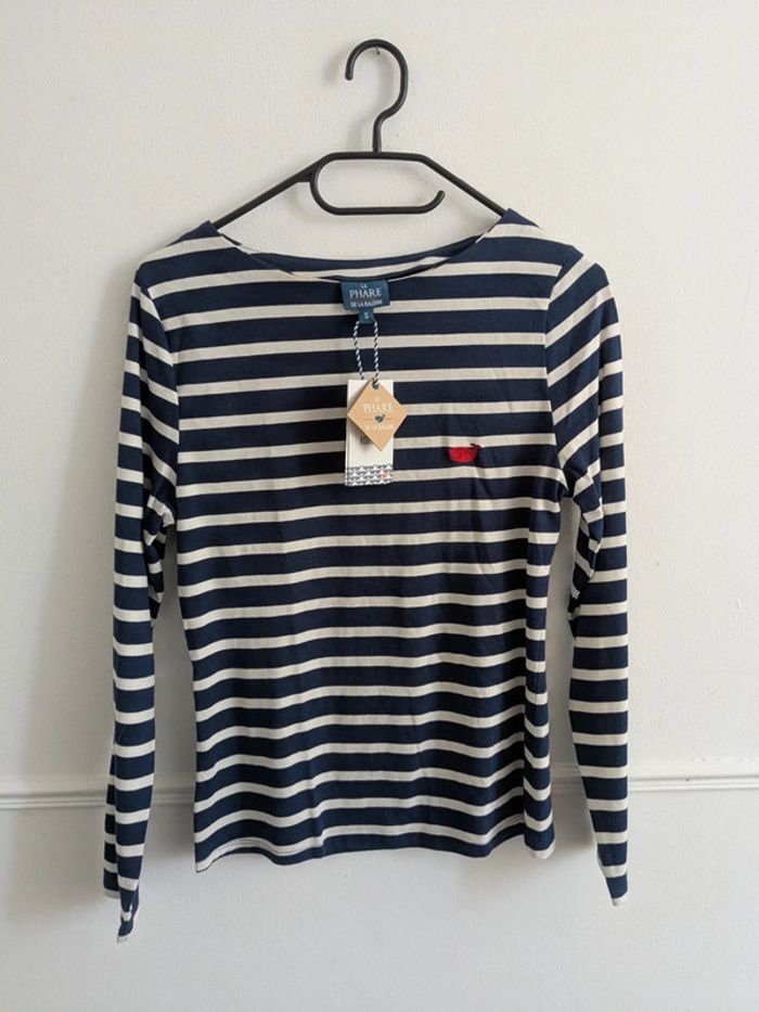 T-shirt manches longue marinière S Bleu marine et blanche Le phare de la baleine