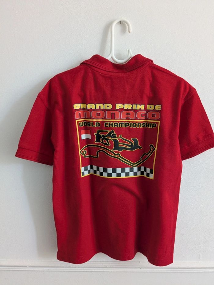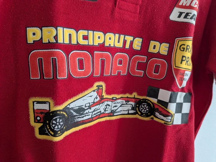 Grand prix de monaco #monaco Polo F1 Monaco Grand Prix rouge manches courtes Logo Monaco Grand Prix sur le devant avec formule 1 Dessin du circuit du grand prix de Monaco dans le dos Logos sur les manches M 100% coton