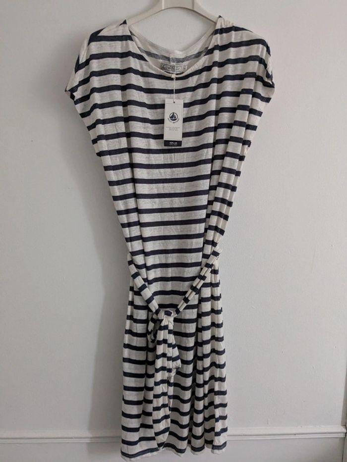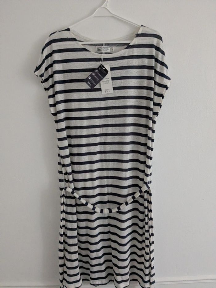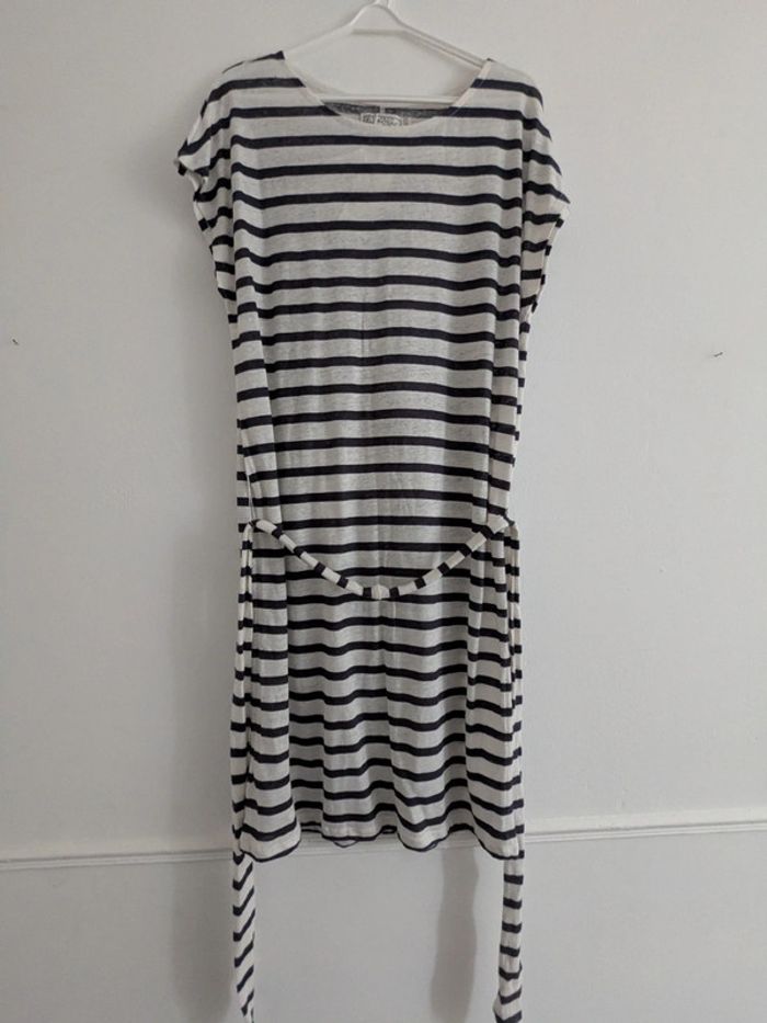 Robe en lin rayée blanche et bleu L - photo numéro 1